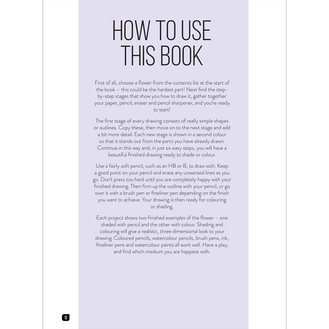Dies ist das perfekte Buch für angehende Künstler, die ihre Lieblingsblumen zeichnen möchten, oder für erfahrene Künstler, die auf der Suche nach neuen Inspirationsquellen sind.