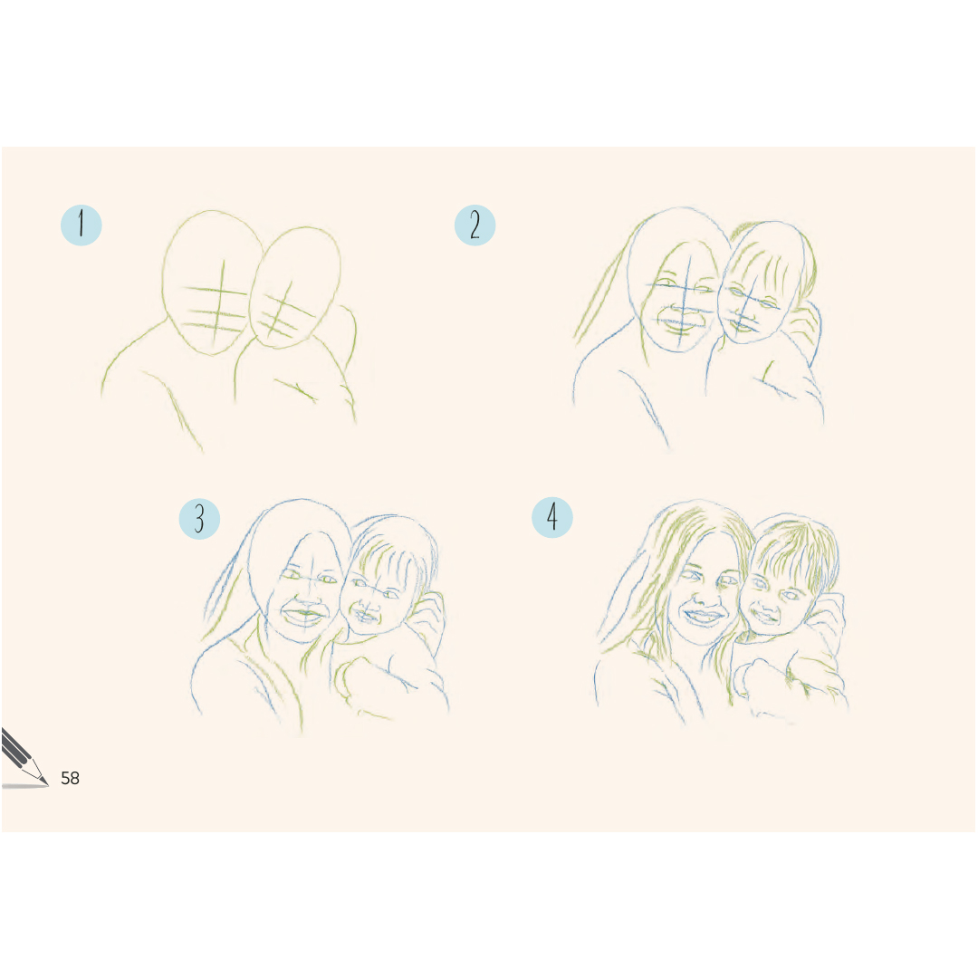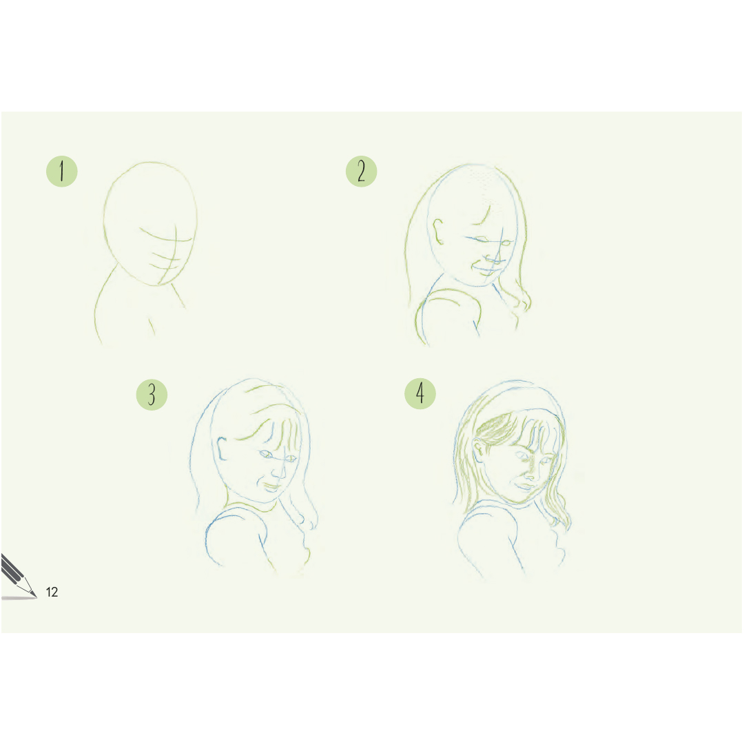 Mit einer großen Auswahl an Kopf- und Schulterporträts enthält dieses Buch eine Reihe vielfältiger und dynamischer Gesichter und Frisuren, die dich inspirieren und ermutigen, deine neuen Fähigkeiten an Porträts von Freunden und Familie anzuwenden.