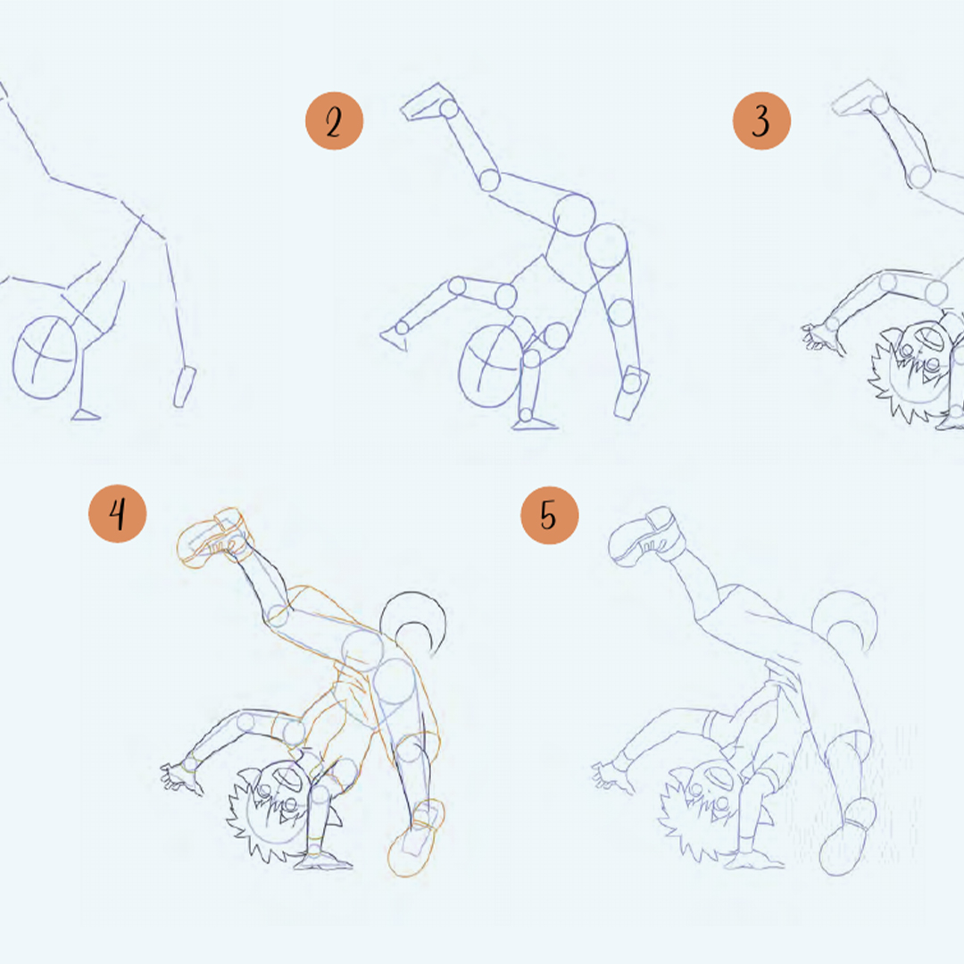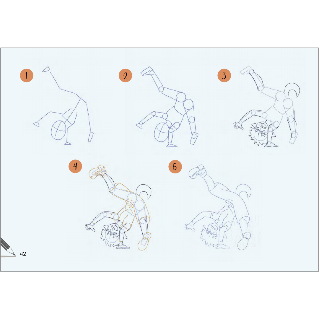 Wähle aus einer Vielzahl von Charakteren, darunter ein zauberwirkender Magier, ein fliegender Engel, ein rennendes Schulmädchen und ein farbenfroher Popstar – in zahlreichen dynamischen Posen, alle voller Persönlichkeit und Stil. Jede Figur wird in acht einfachen Schritten entwickelt, von einer groben Skizze der Grundformen bis zur fertigen, kolorierten Zeichnung. Das macht dieses Buch ideal für Erwachsene und Kinder aller Altersstufen und Fähigkeiten.