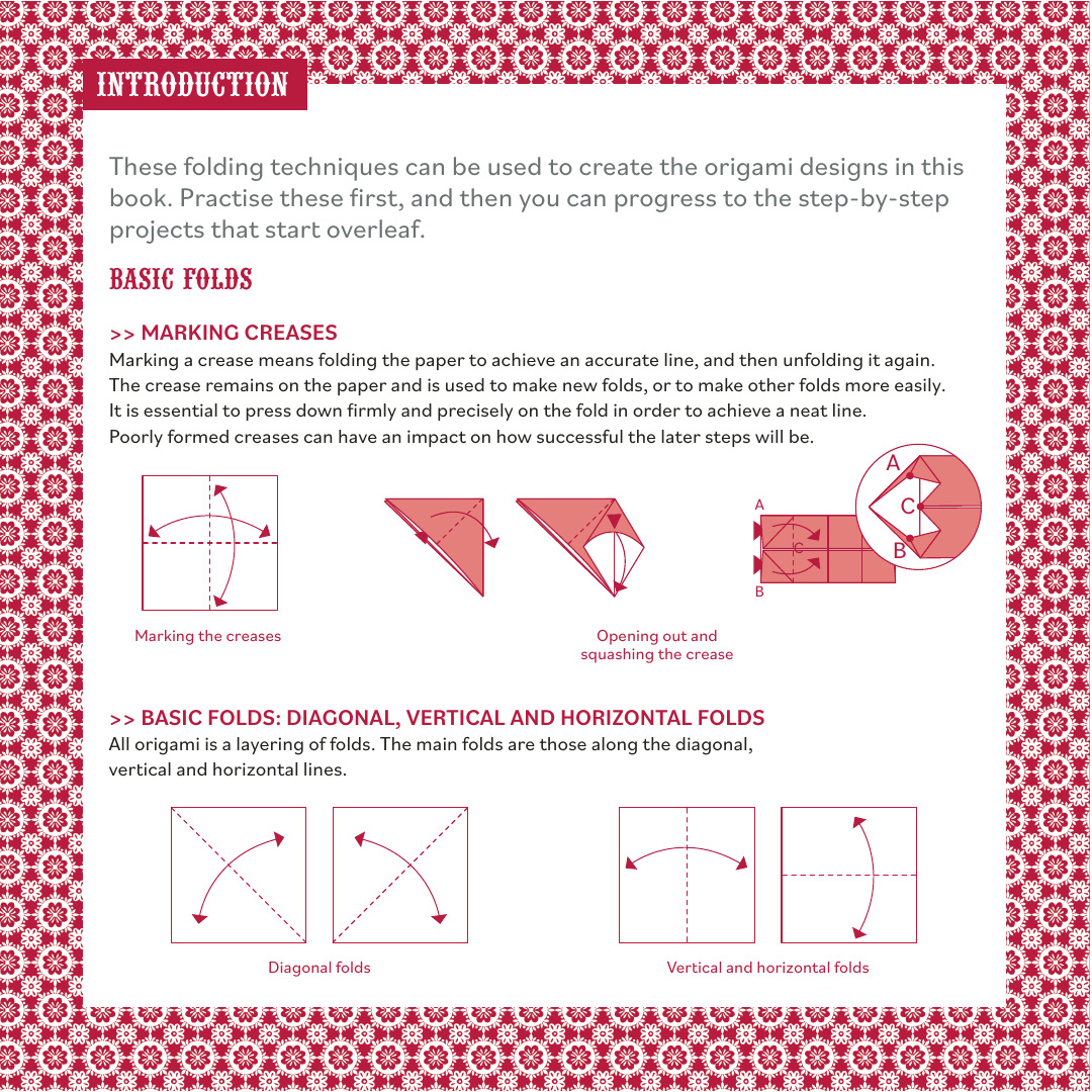 - Das Buch beginnt mit einer Einführung in grundlegende Falttechniken, einschließlich horizontaler, vertikaler und diagonaler Faltungen sowie fortgeschrittener Techniken wie der Umkehrfaltung und der Ziehharmonikafaltung.