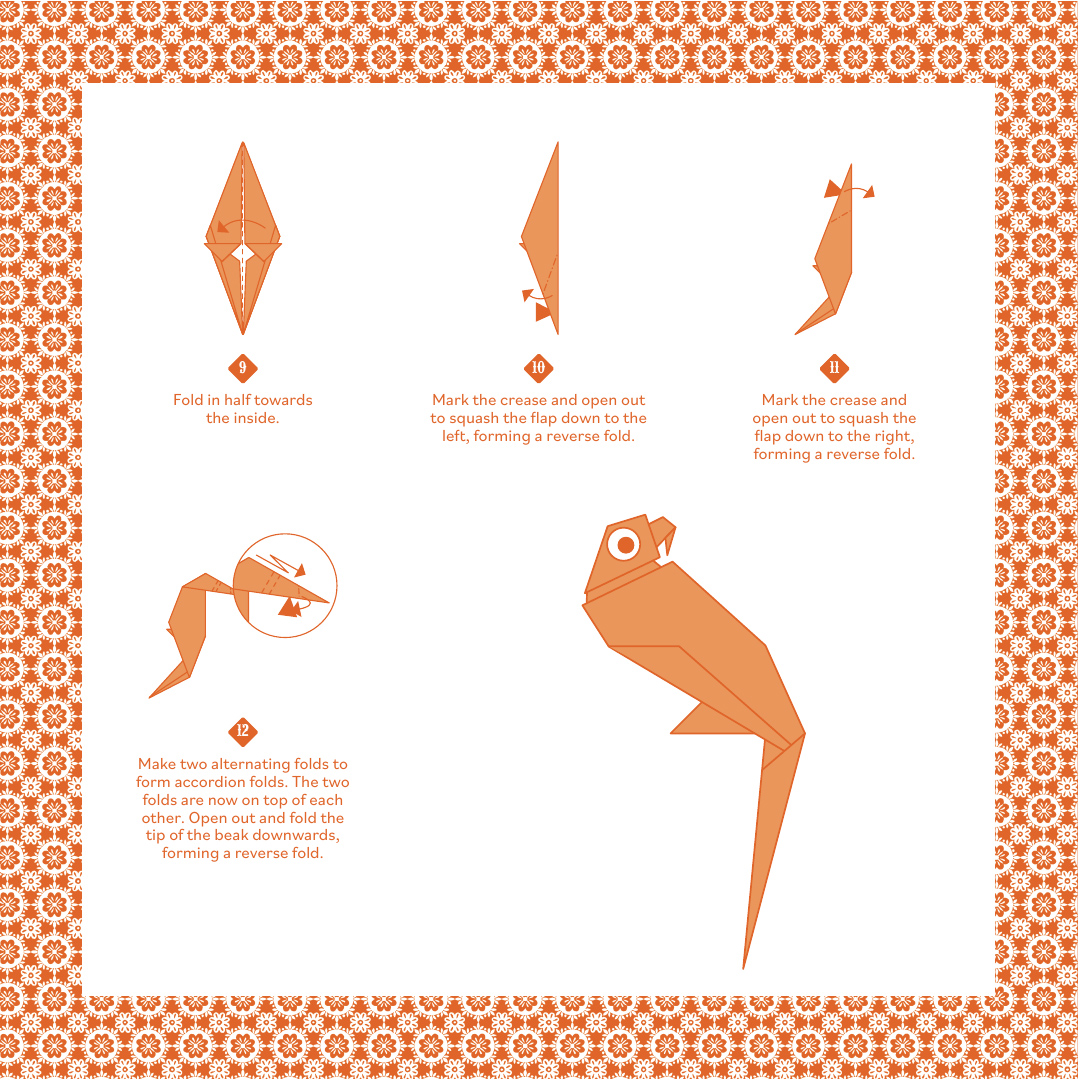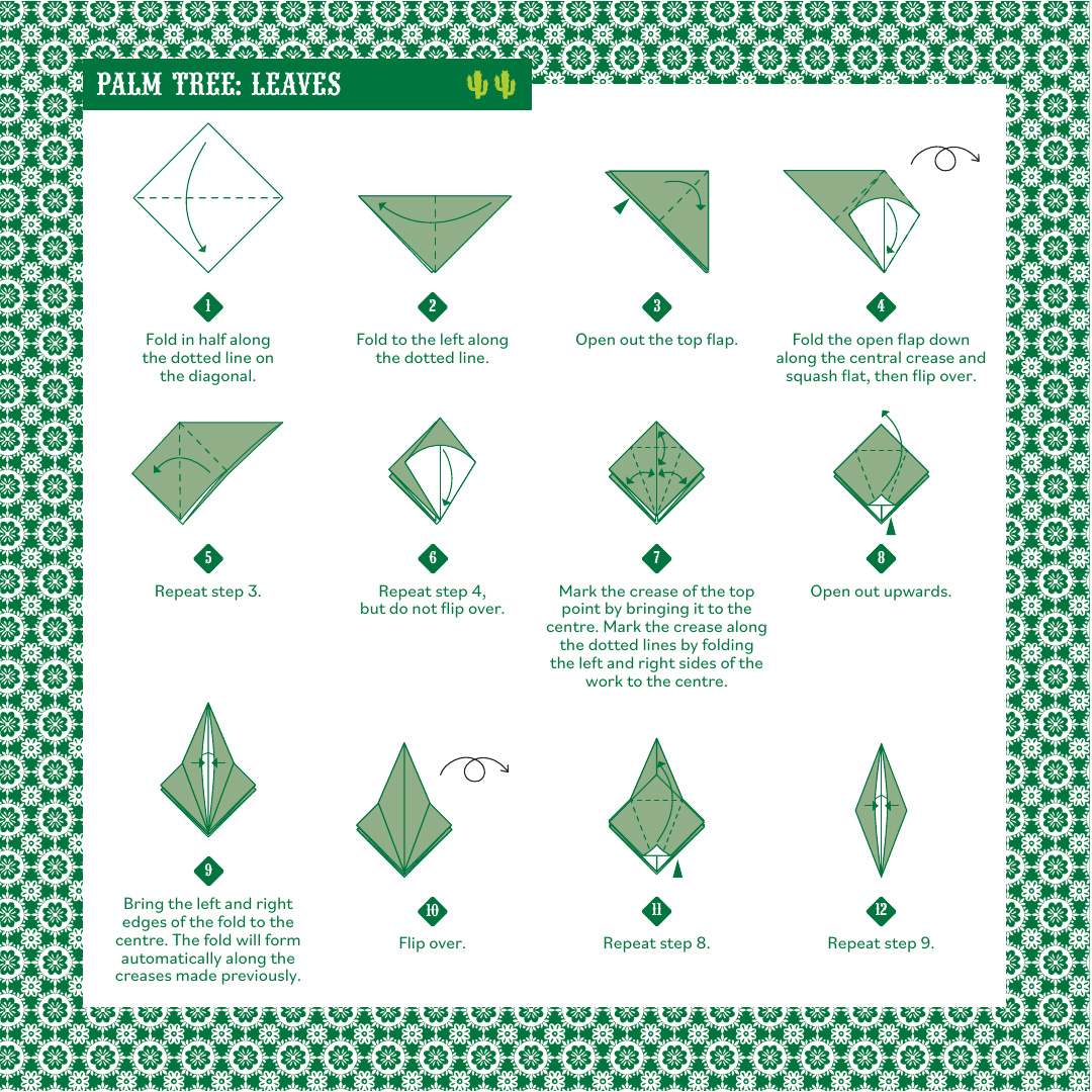 - Die Papiere sind 17 × 17 cm groß; größer als Standard-Origamipapier (15 × 15 cm), sodass sie für kleinere Elemente zugeschnitten oder bei Bedarf auf Standardgröße reduziert werden können.