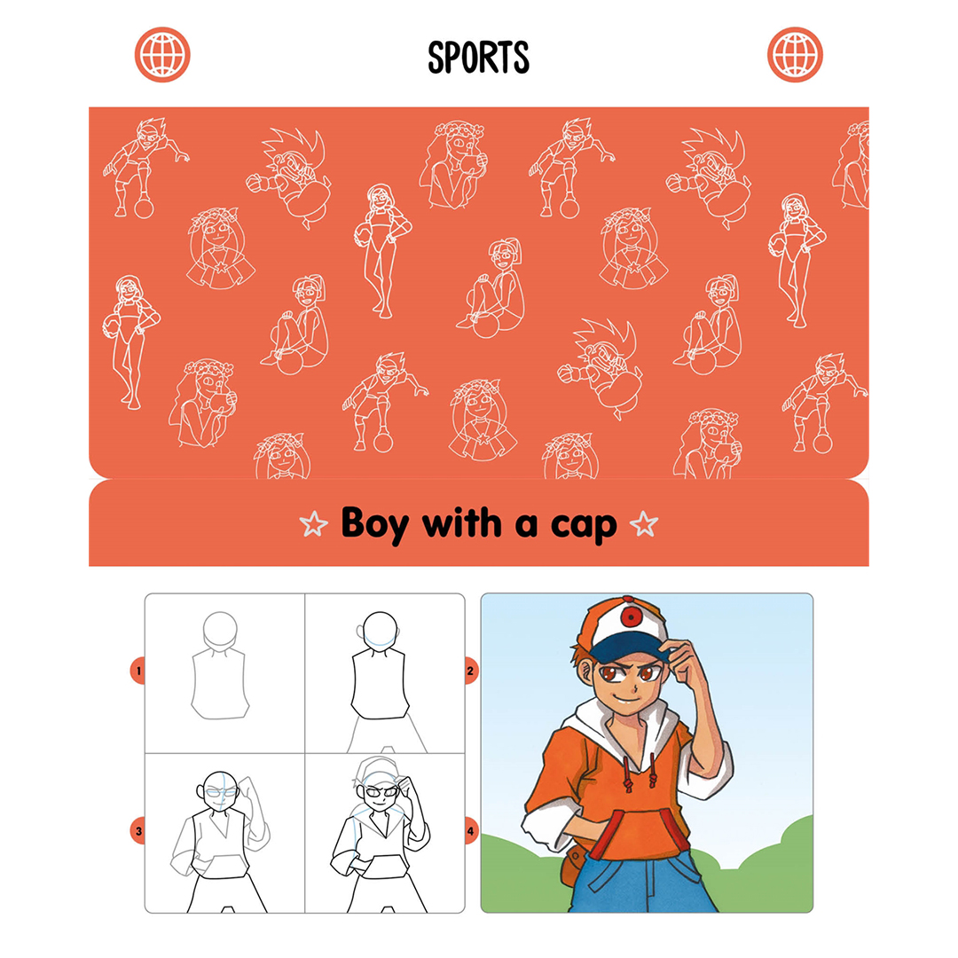 - Ein Minibuch mit geführten Anleitungen zum Zeichnen von Kopf, Gesichtern und Ausdrücken.