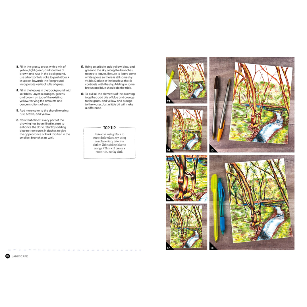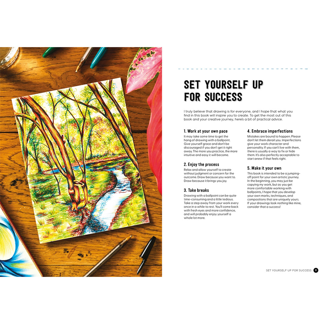 Vollgepackt mit Übungen, Aufgaben, Galerien und Techniken bietet Me and My Ballpoint Pen inspirierende Ratschläge, wie Sie beginnen, sich verbessern oder die Kunst des Zeichnens mit dem Kugelschreiber meistern können.