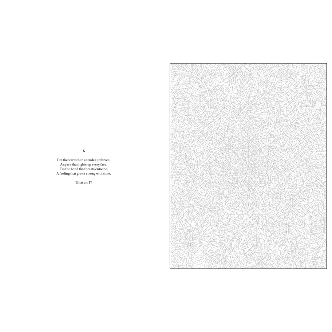 - Für zusätzlichen Spaß enthält jede Illustration ein Rätsel, über das du nachdenken kannst, während du das Bild zum Leben erweckst. Die Lösungen findest du am Ende des Buches in Wort und Bild.