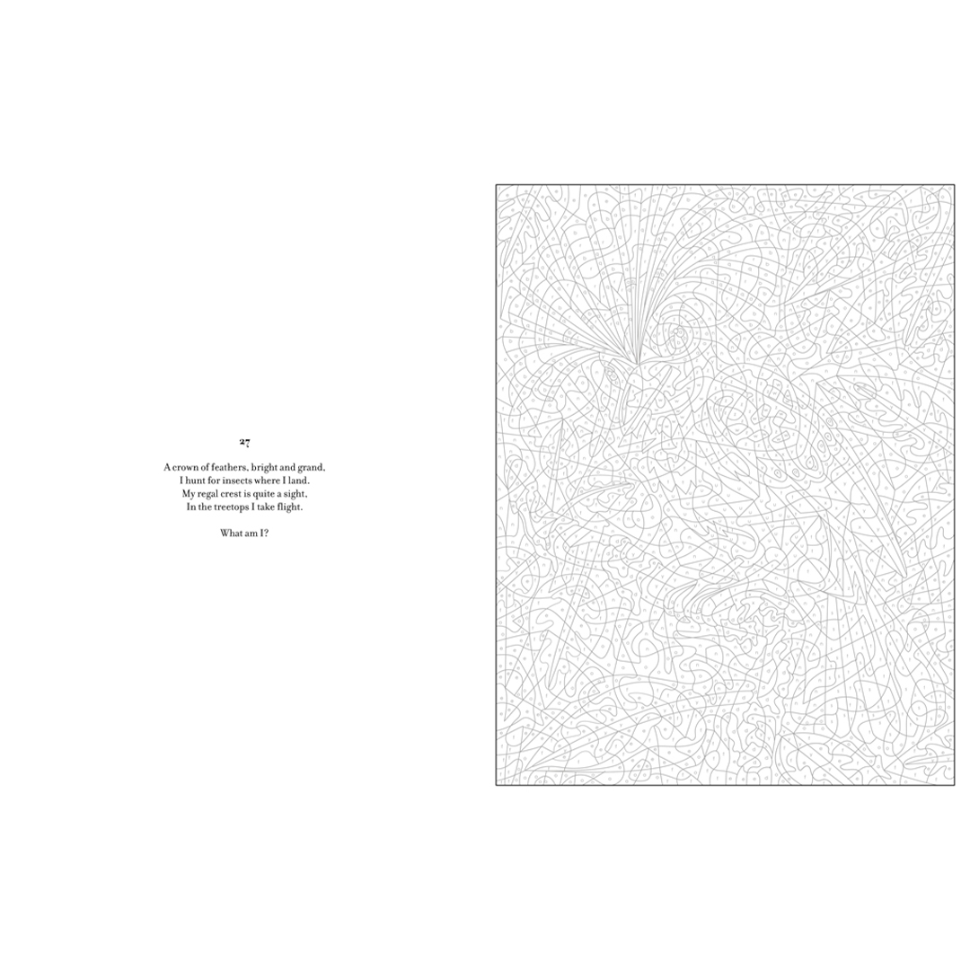 - Für zusätzlichen Spaß enthält jede Illustration ein Rätsel, über das du nachdenken kannst, während du das Bild zum Leben erweckst. Die Lösungen findest du am Ende des Buches in Wort und Bild.