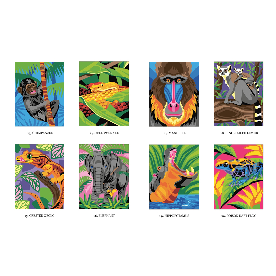- Jede der 30 neuen und modernen Illustrationen zeigt ein beliebtes und farbenfrohes Wildtier, das erscheint, wenn du nach Zahlen ausmalst.