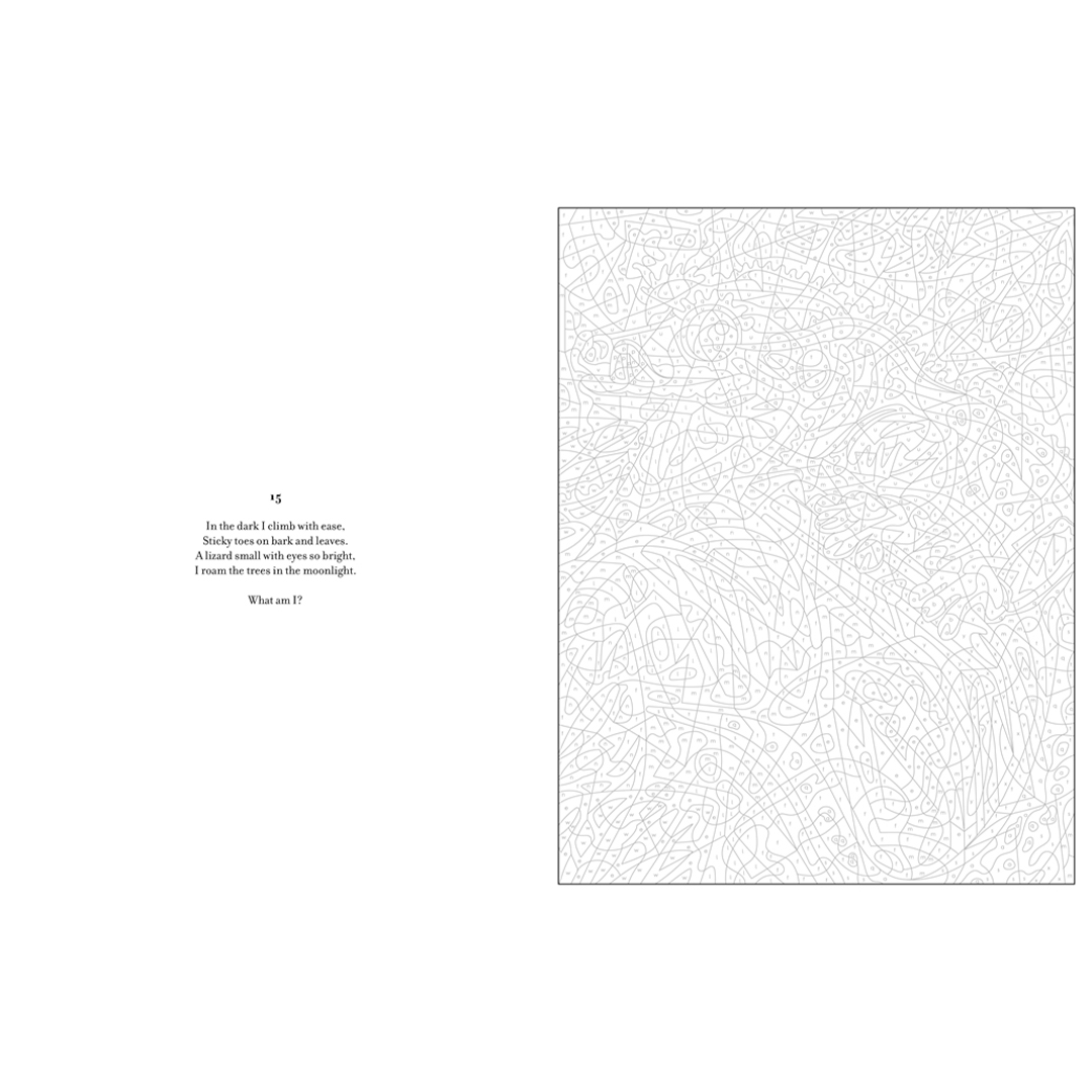 Solve the riddle and color by numbers to reveal the picture by Eugénie Varone