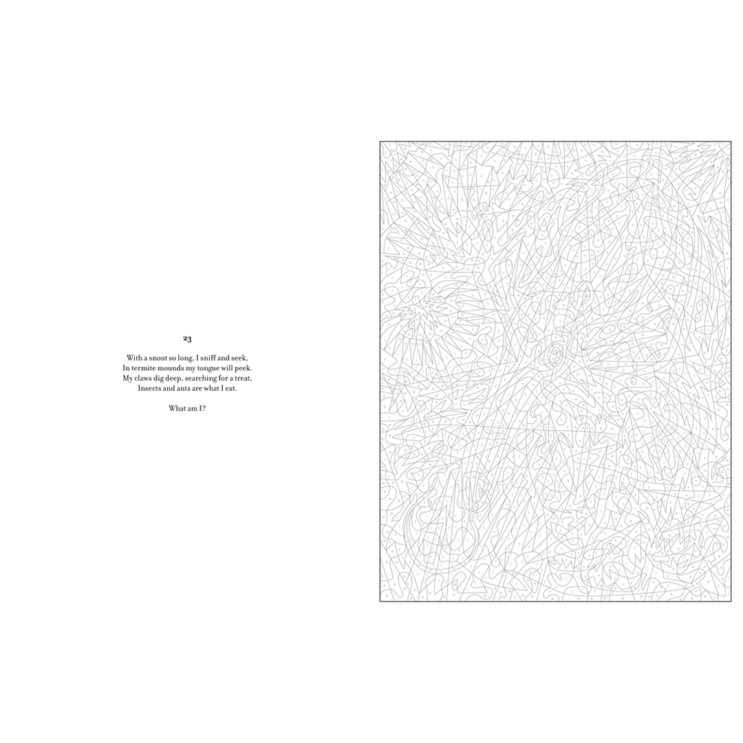 Der neueste Trend im Ausmalen, der die Freude am Ausmalen mit dem Reiz einer Überraschung verbindet! Jede der 30 modernen Illustrationen zeigt ein beliebtes Wildtier, das sichtbar wird, wenn du nach Zahlen ausmalst, sowie ein Rätsel, über das du nachdenken kannst, während du das Bild zum Leben erweckst. Eine fesselnde Auszeit für Ausmalbegeisterte aller Niveaus.