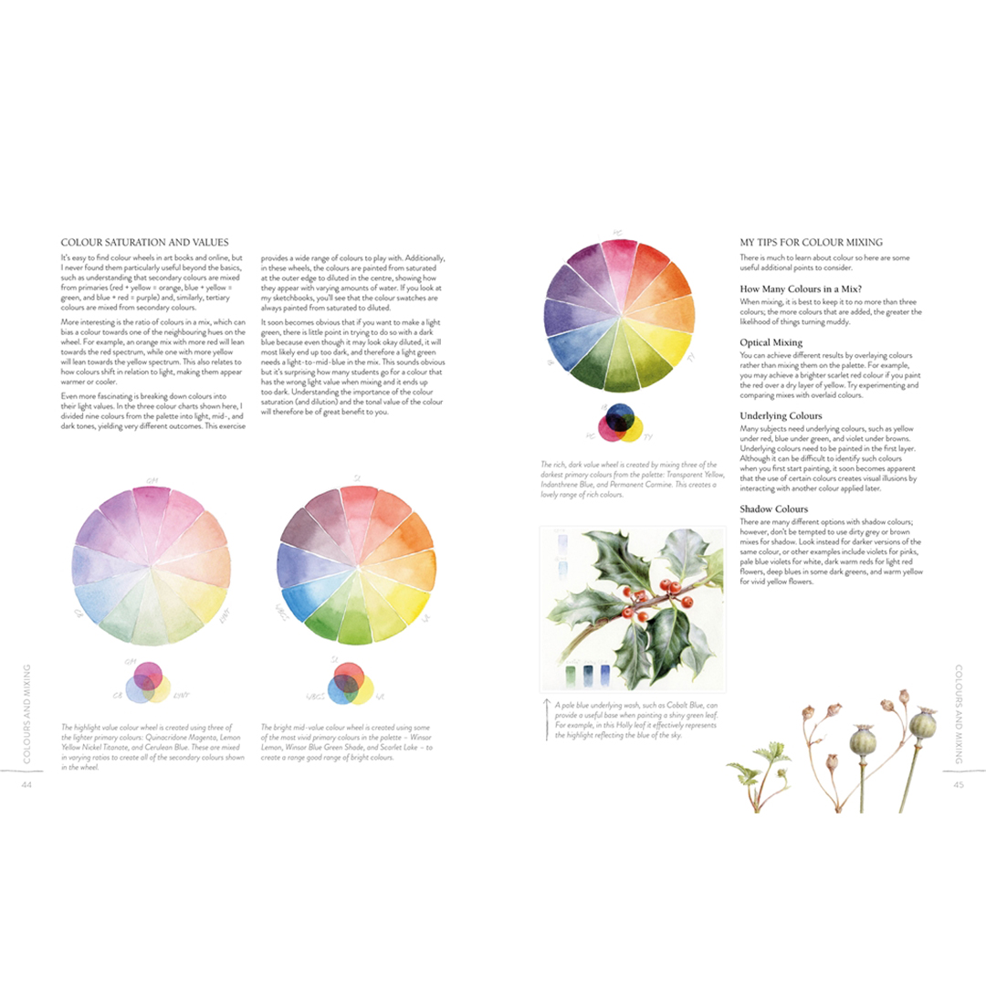 In diesem umfassenden Buch, das voller Schritt-für-Schritt-Anleitungen steckt, teilt Dianne großzügig ihr Wissen – von der Wahl des perfekten Skizzenbuchs (oder sogar dem eigenen Anfertigen mit einfachen Buchbinde-Techniken) bis hin zur vertieften Entwicklung von Skizzenbuchseiten. Dabei geht es um Inhalt und Komposition, darum, welche Pflanzenteile einbezogen werden sollten, wie man mit verschiedenen Motiven umgeht und wie man seinen Arbeiten mit einfachen Aquarelltechniken Leben einhaucht.