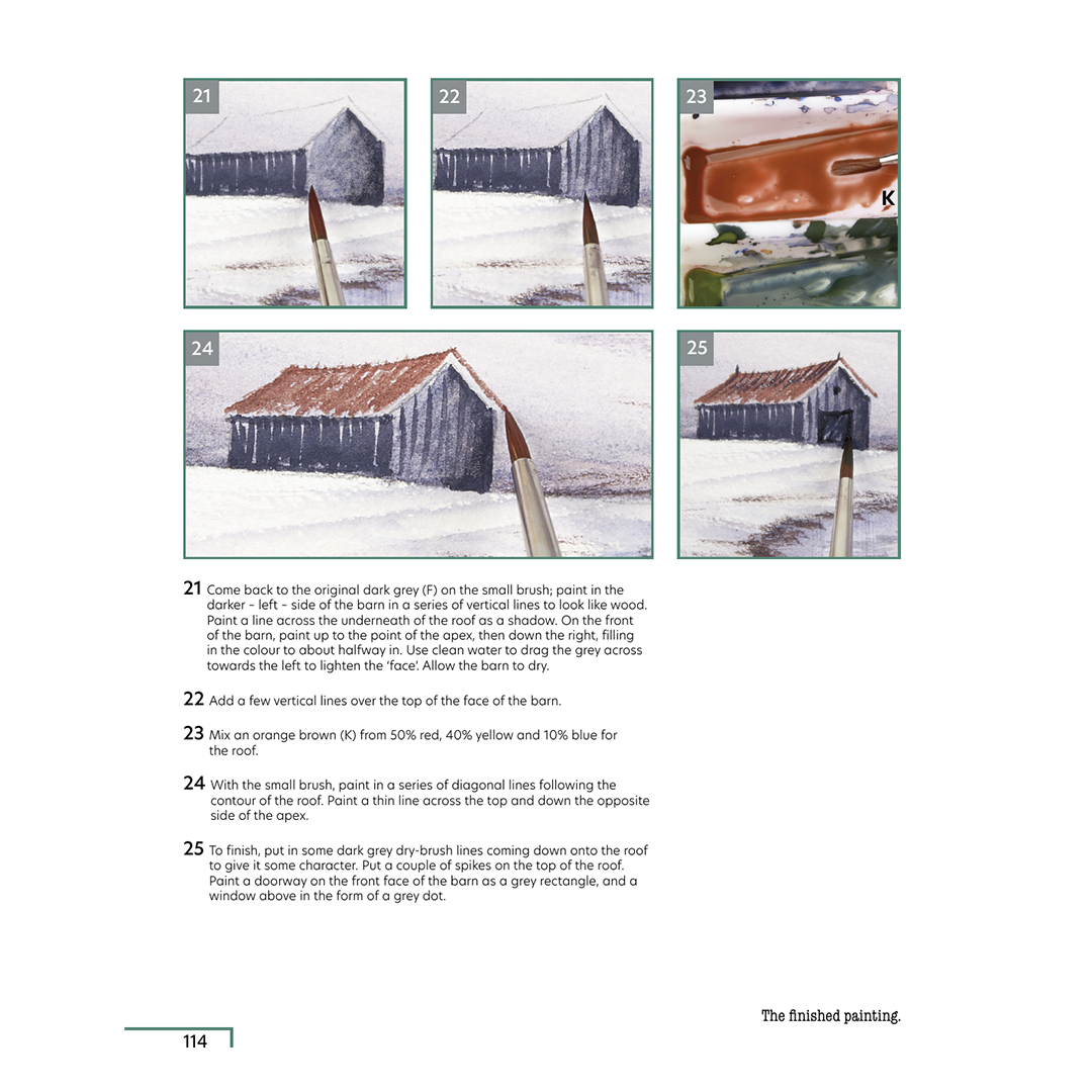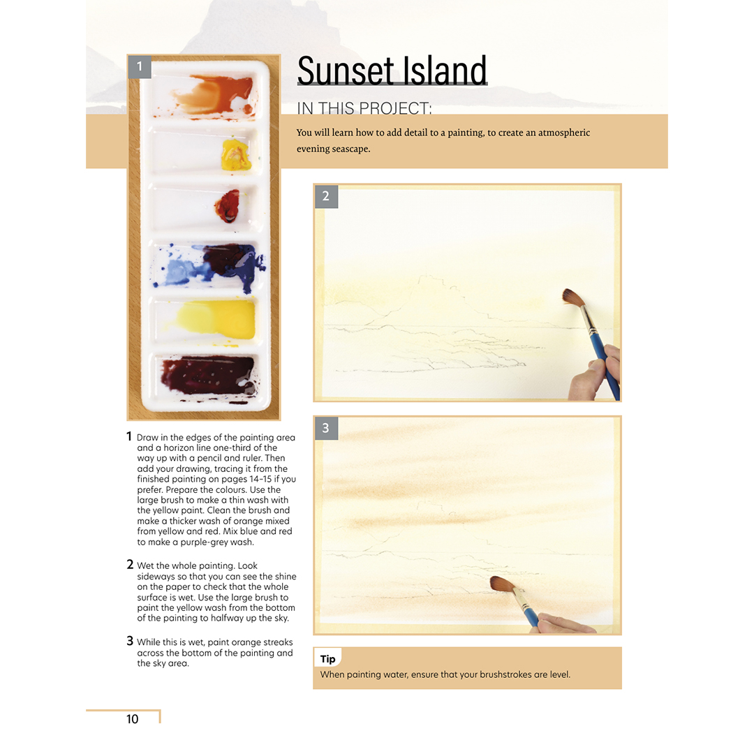 Das Buch enthält insgesamt 25 Projekte. Jedes Projekt erforscht verschiedene Aquarelltechniken und führt dich Schritt für Schritt durch klare Anleitungen. Du verwendest nur drei reine Farben und ihre vielen Mischungen sowie drei Pinsel, um jedes Gemälde fertigzustellen.