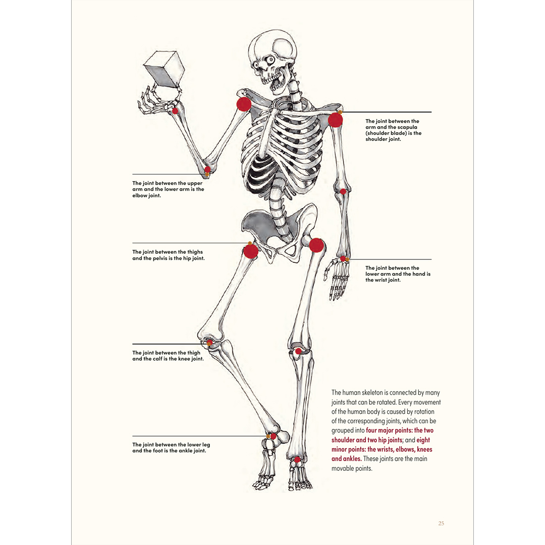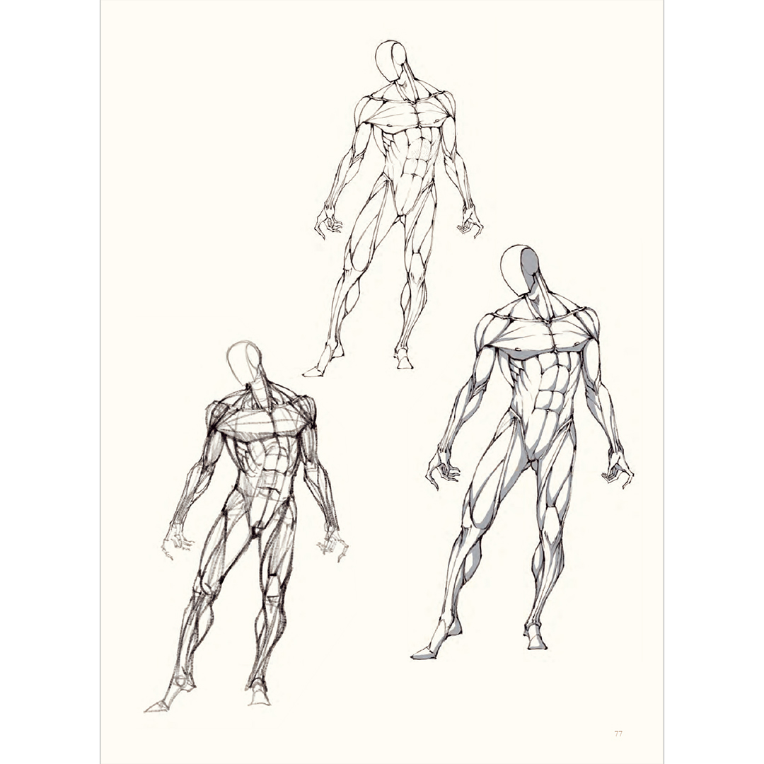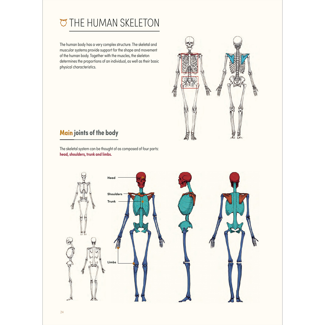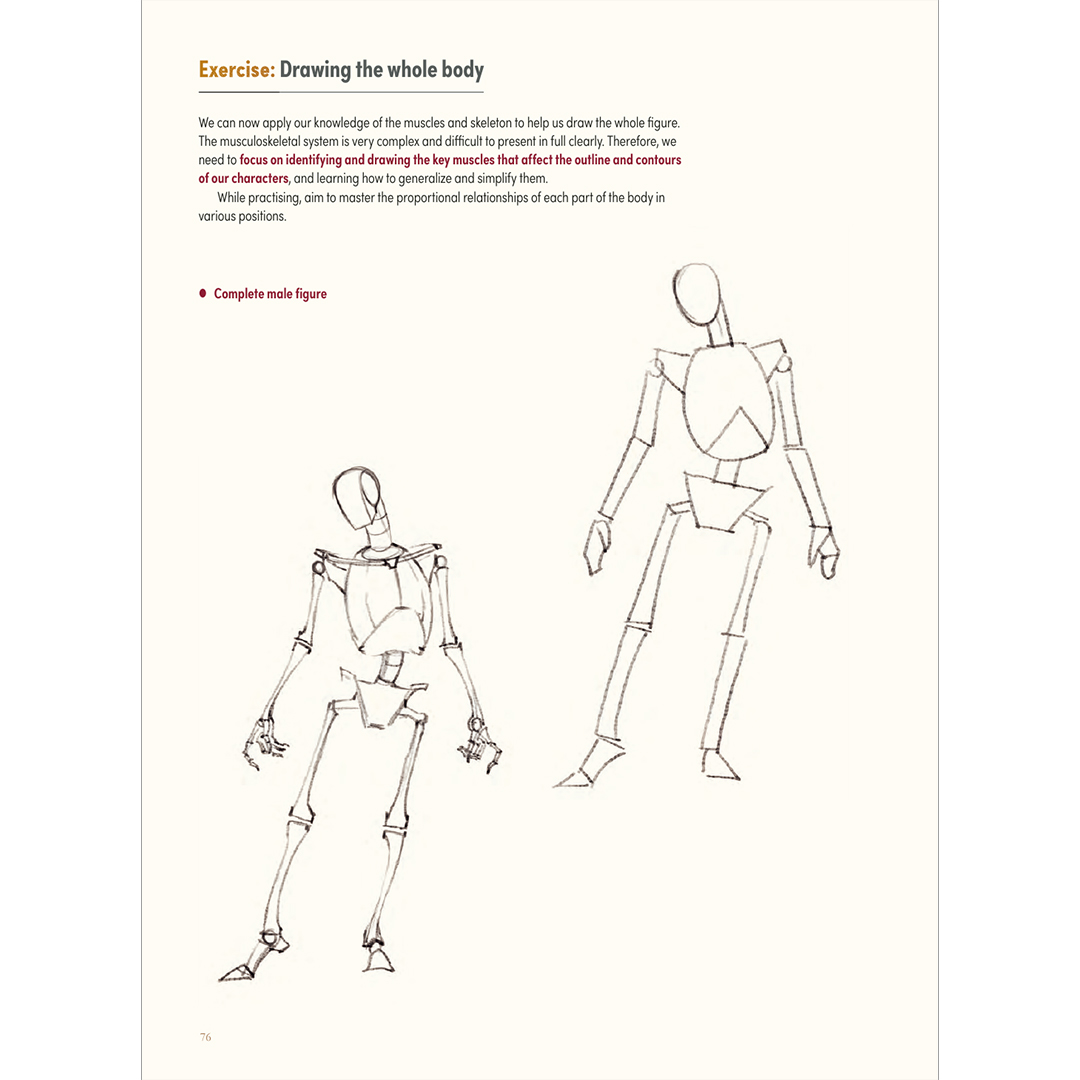 Menschliche Anatomie und Kinetik: Verstehe die Struktur und Bewegung, die die Grundlage für jedes Charakterdesign bilden. Skelett- und Muskelsysteme werden auf vielfältige Weise erforscht, von traditionellen muskuloskeletalen Illustrationen bis zu Linien- und Kubusformen. Enthalten ist auch eine Anleitung zum Zeichnen von Händen, Füßen, Gliedmaßen und Gesichtszügen voller Charakter und Ausdruck.