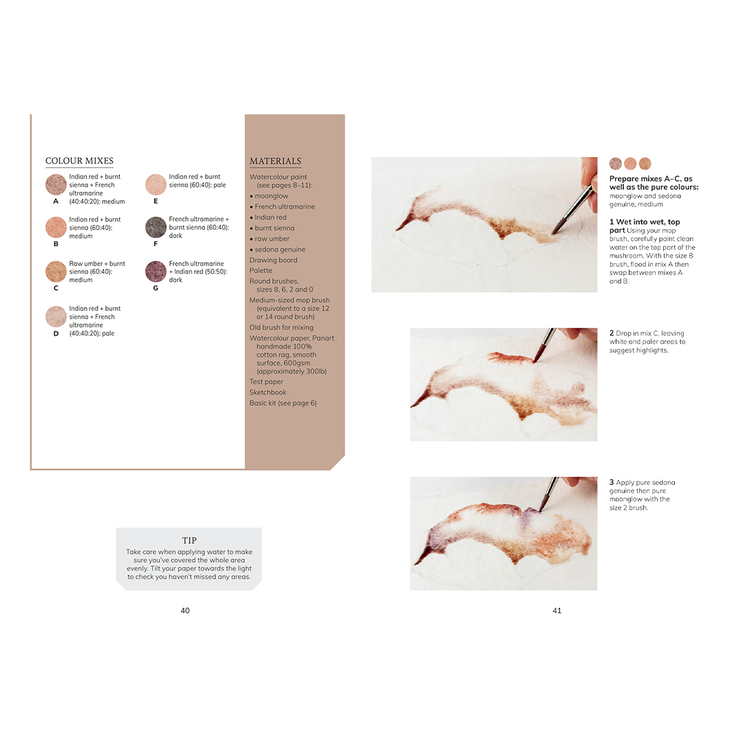 Erstellen Sie über 100 lebendige Aquarellmischungen und malen Sie eine Reihe inspirierender Waldmotive, einschließlich Bäume, Pilze, Insekten und Vögel zusammen mit der preisgekrönten Künstlerin und Farbmisch-Expertin Julie Collins.