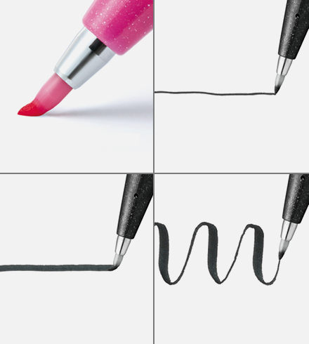 Pinselstifte sind Marker mit flexiblen Spitzen, die sowohl feine als auch breite Linien erzeugen können. Für Anfänger empfehle ich den Pentel Brush Sign Pen. Er hat eine kleinere Spitze, die mehr Kontrolle bietet und das Erlernen der Grundlagen erleichtert. Hat man die Technik einmal verinnerlicht, wird genau dieser Stift oft zu einem treuen Begleiter.