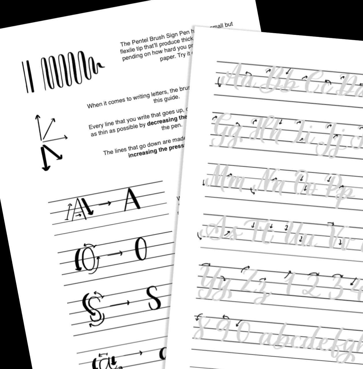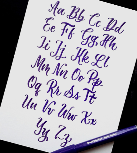 Das Geheimnis ist, jeden Buchstaben einzeln und langsam zu schreiben. So hast du mehr Kontrolle über die Form der Buchstaben und genug Zeit, dir die Strichstärke jedes einzelnen Strichs zu überlegen. Hier siehst du das gesamte Alphabet in Schreibschrift und wie die Buchstaben miteinander verbunden werden.