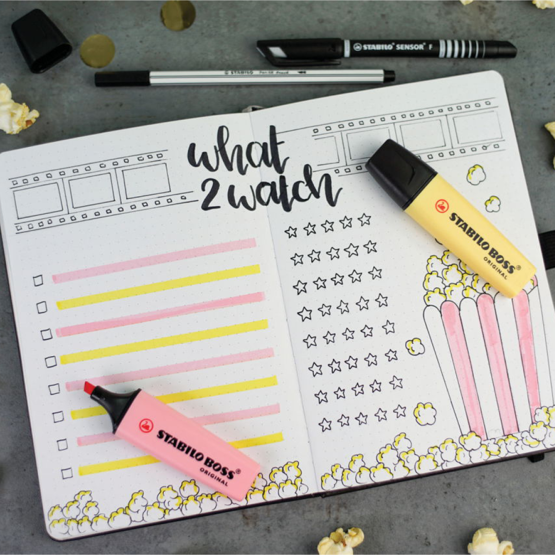 Der Mildliner der japanischen Marke Zebra ist bei vielen BuJo Fans ein Favorit! Der Stift ist wasserbasiert und hat zwei Spitzen, eine breite und eine feine. Er ist in angenehmen Pastellfarben erhältlich und sorgt für ein weiches Ergebnis. Ein weiterer Vorteil ist, dass die Tinte nicht so leicht durch das Papier drückt, selbst wenn du etwas dünneres Papier verwendest. Kurz gesagt, der perfekte Stift für diesen Zweck!