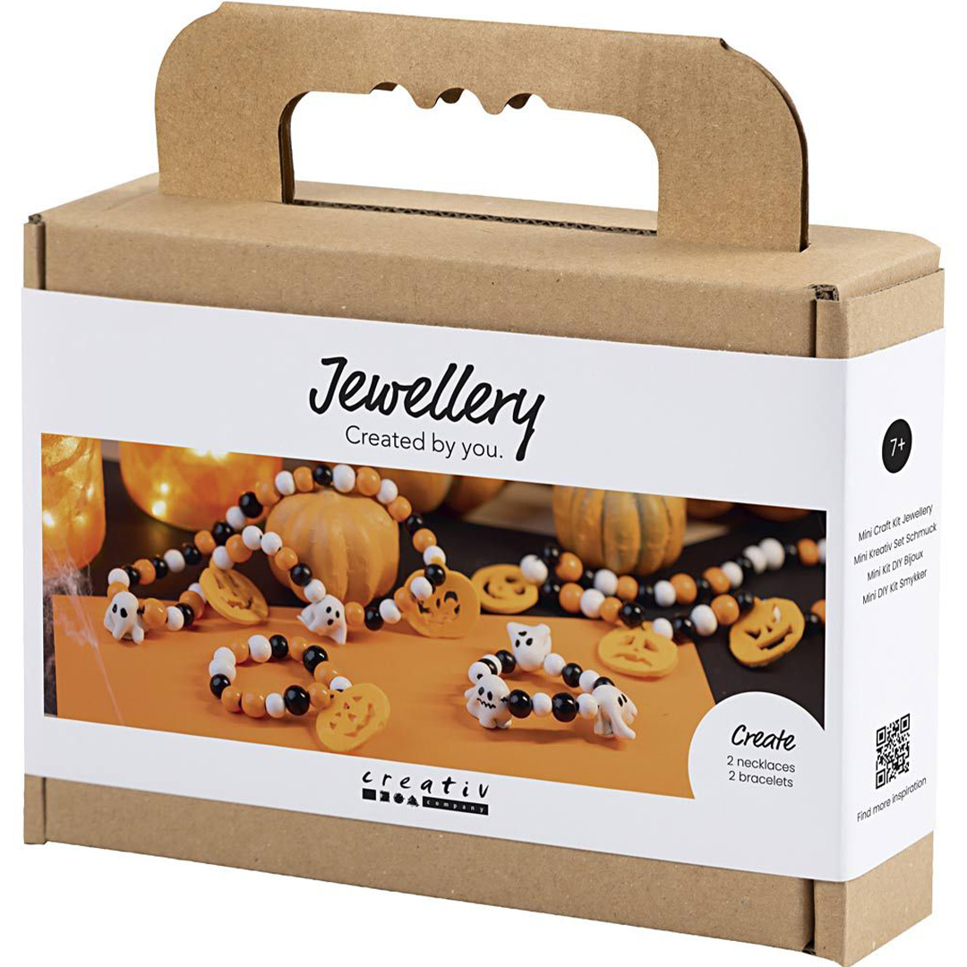 Mit einem DIY-Set von Creative Company können die Kinder coole Halloween-Schmuckstücke aus bunten Perlen und Anhängern kreieren. Das Set enthält Material für zwei Halsketten und ein Armband sowie alle benötigten Anleitungen.