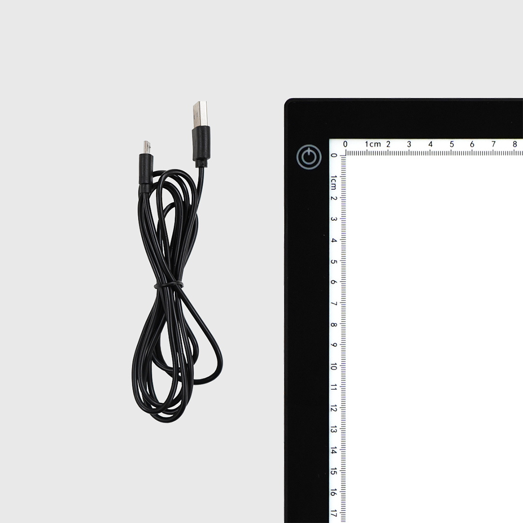 Der Leuchttisch ist LED-beleuchtet, hat eine Acryloberfläche und ist nur 5 mm (!) dick. Das Arbeitslicht beträgt 240-260 Lumen und kann auf drei verschiedene Stufen eingestellt werden. Die Lebensdauer der Lampen beträgt ca. 5000 Stunden. Der Leuchttisch hat an zwei Seiten ein Kantenlineal.