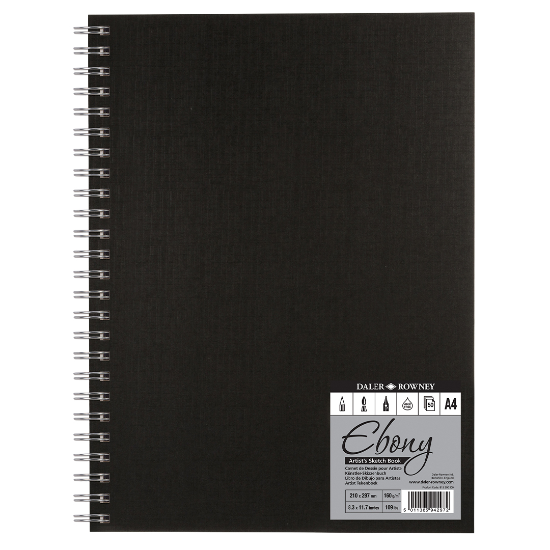 Spiralgebundenes Skizzenbuch von Daler Rowney in der Größe A4. 50 Bögen 160 g/m². Säurefreies Papier. Geeignet für wasserbasierte Stifte, Kohle, Grafit und Tinte.