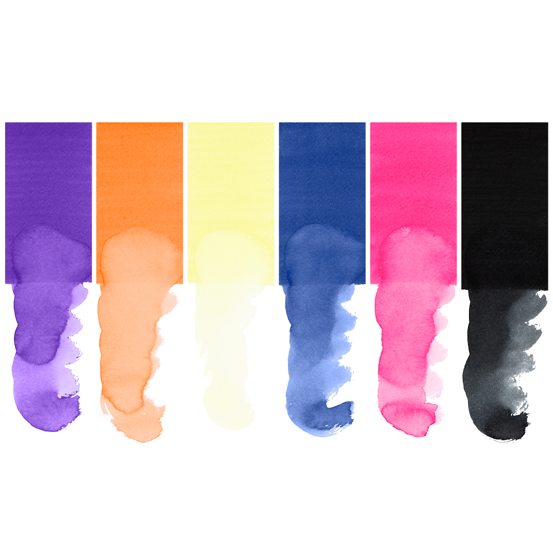 Die Tinte ist auf Wasserbasis, das heißt, sie blutet nicht durch das Papier und ist wasserlöslich, so dass man mit ihr Aquarelleffekte auf dem Papier erzielen kann.