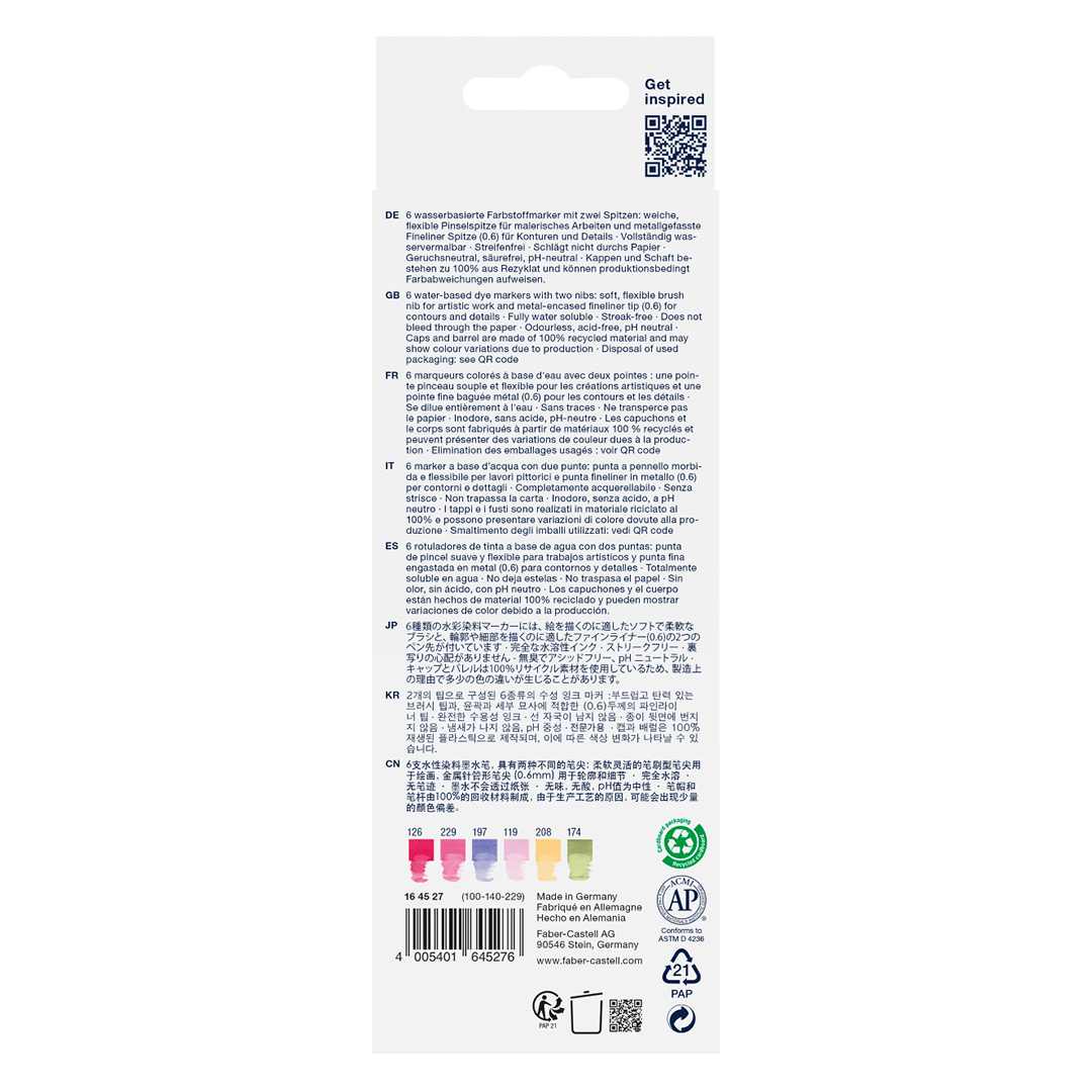 Der Stift ist außerdem eine umweltfreundliche Wahl, da er zu 100 % aus recyceltem Kunststoff hergestellt ist. Die Tinte ist geruchlos, säurefrei und pH-neutral.
