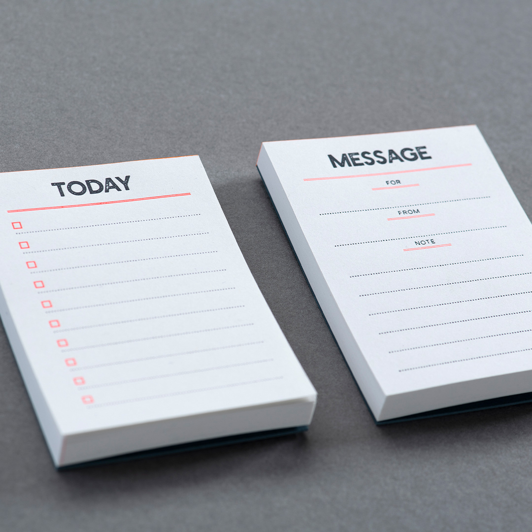 Das Set besteht aus zwei Blöcken mit den Designs TODAY für tägliche Erinnerungen und MESSAGE für Mitteilungen an Familie, Freunde und Kollegen. Das Gmund Bio Cycle Papier ist nachhaltig und ökologisch durch die Verwendung von 100% recycelten Fasern.
