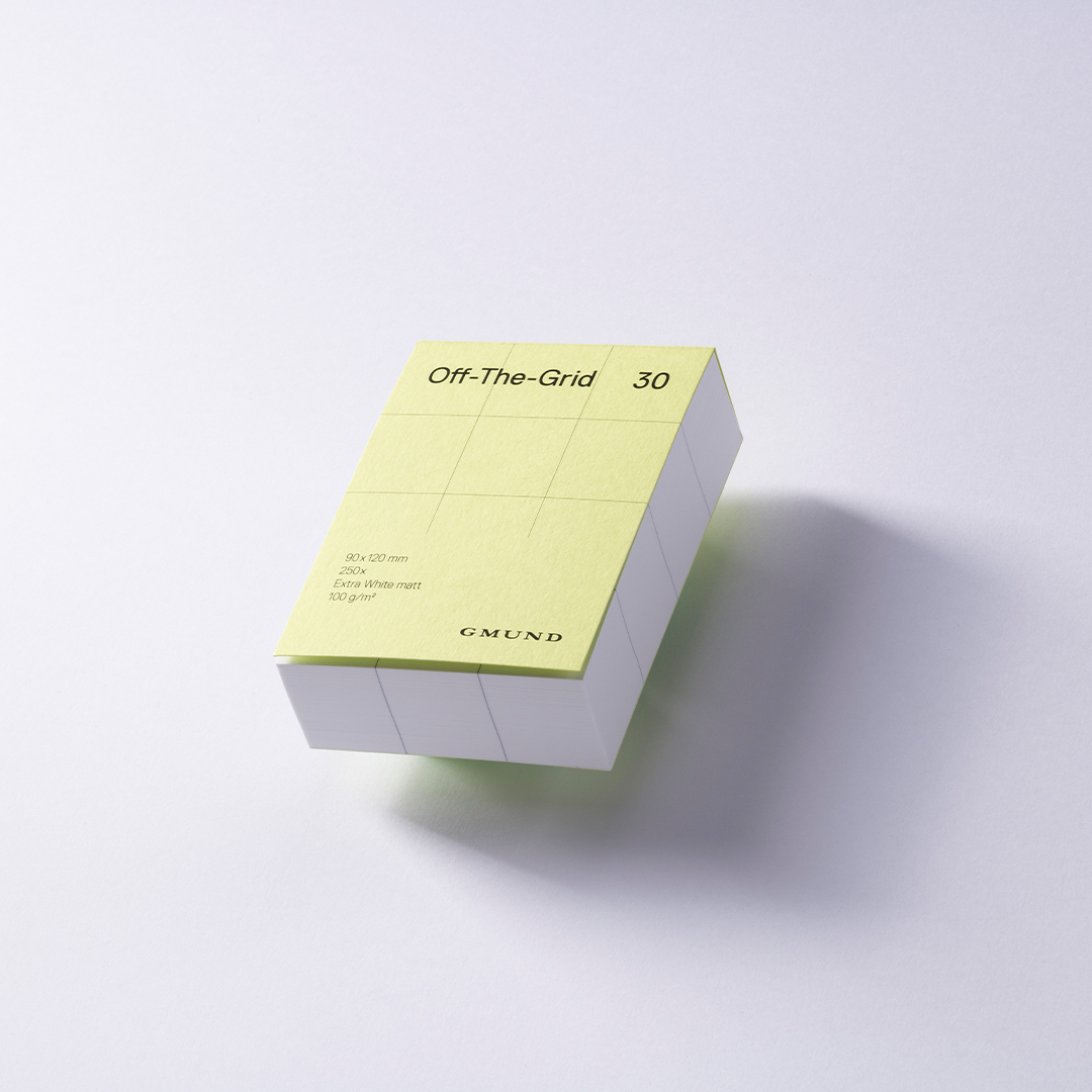 Der Block enthält 250 Blatt mattes, ungestrichenes Papier, das aus Pflanzenfasern hergestellt, umweltfreundlich und recycelbar ist. Neben seiner praktischen Verwendung ist Off-The-Grid auch ein Wohnaccessoire, das auf den Schreibtisch jedes Designliebhabers passt. FSC-zertifiziertes Produkt.