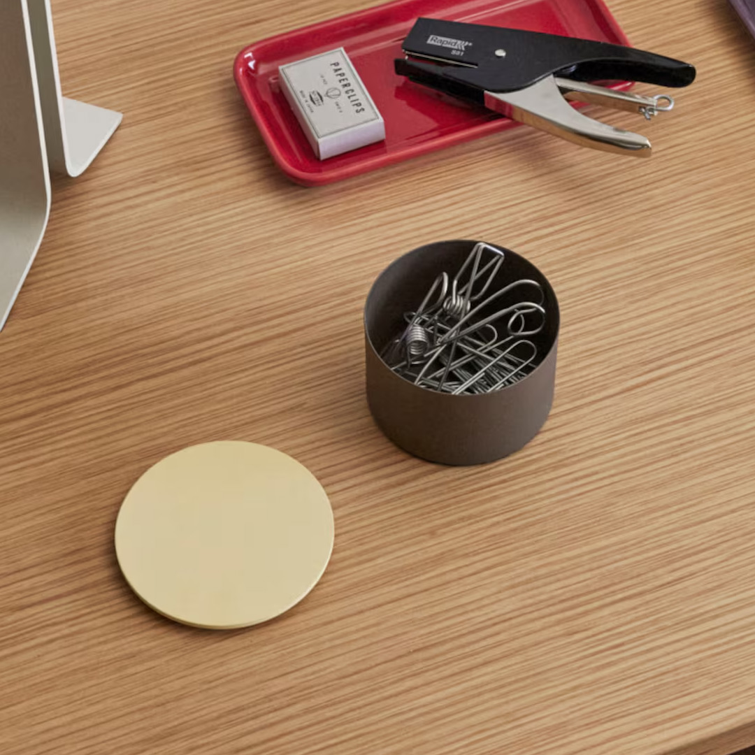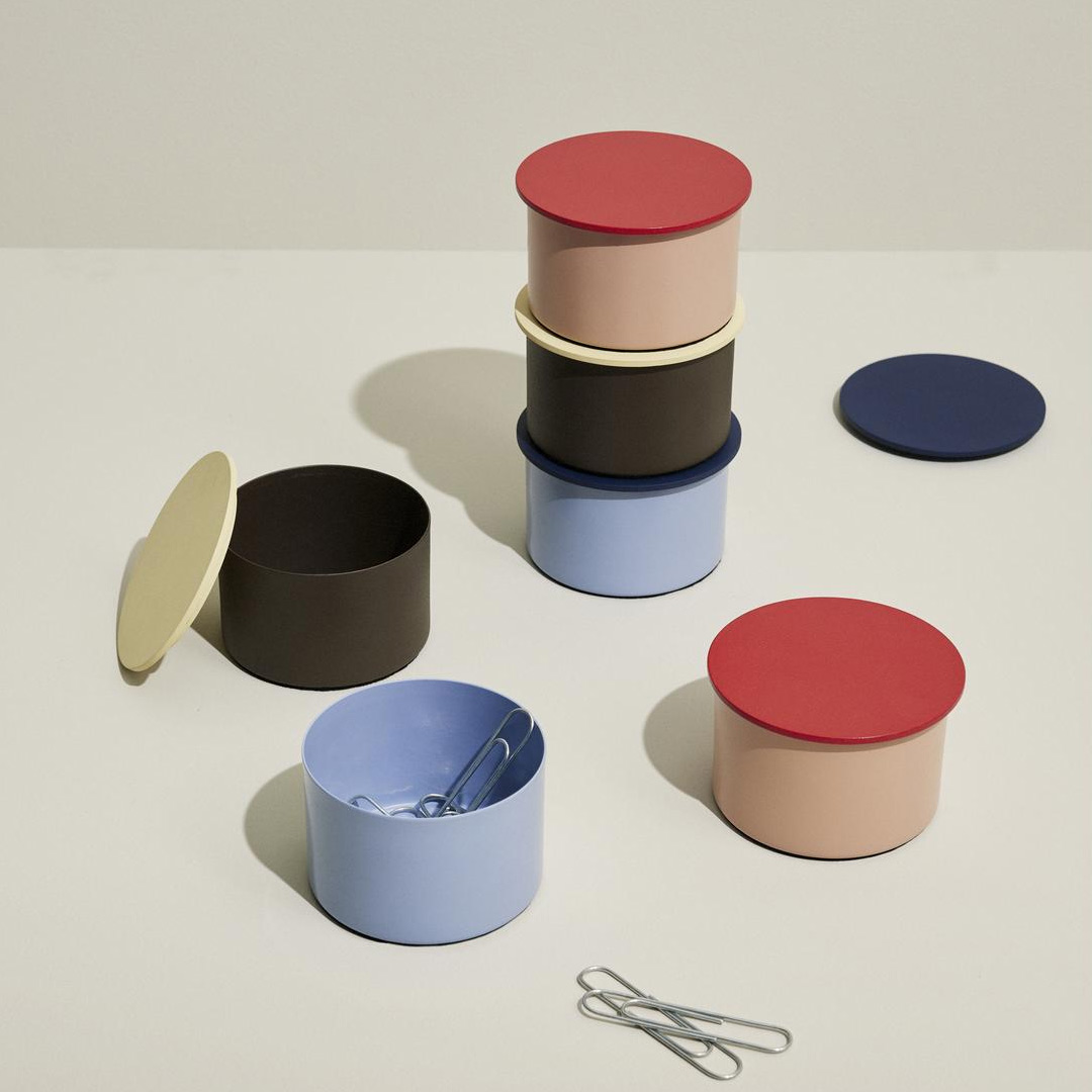 Diese kleine Aufbewahrungsdose aus pulverbeschichtetem Metall ist ein praktisches Detail, mit dem sich Kleinteile leicht ordentlich verstauen lassen. Mit ihrer frischen Farbkombination wird sie außerdem zu einem dekorativen Element auf dem Schreibtisch, im Regal oder in der Bastelecke. Die Dose eignet sich perfekt für Büroartikel wie Büroklammern, Radiergummis und Anspitzer.