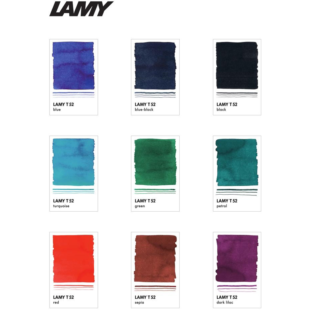 Lamys tolle Tintenpatrone in großem 50 ml Behälter, praktisch ausgestattet mit einer Löschpapierrolle zum Reinigen von Stift und Spitze nach dem Nachfüllen. Der kegelförmige Boden bewirkt, dass sich die Tinte fast bis zum letzten Tropfen leeren lässt. Neben Lamy-Stiften funktioniert die Tinte auch in den meisten anderen Füllfederhaltern gut.