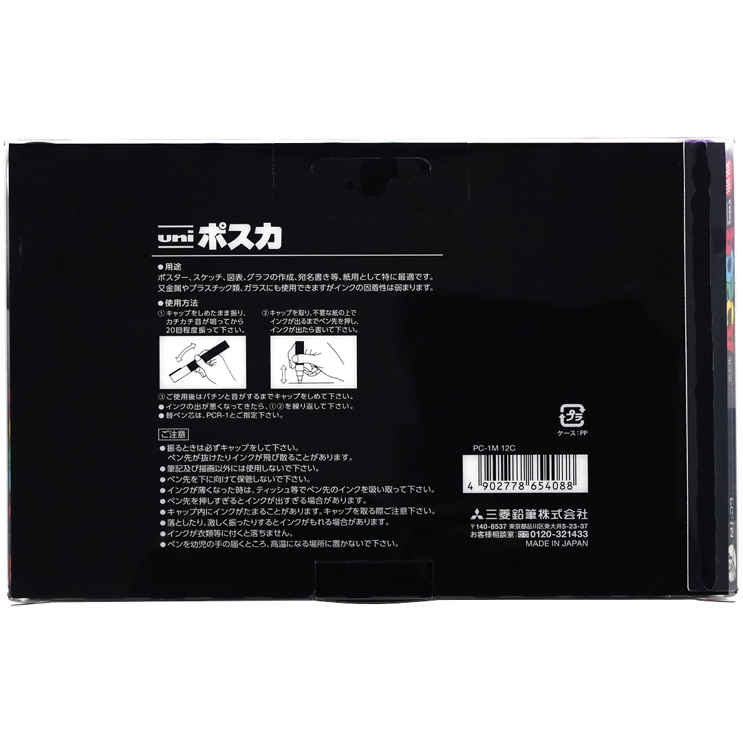 Uni Posca ist ein wasserbasierter deckender Farbstift mit Pigmenten, die auf vielen verschiedenen Oberflächen haften wie Papier, Karton, Holz, Stein, Textil, Glas, Plastik und Metall. Die Farbe ist auf vielen porösen Untergründen permanent und kann von glatten Oberflächen entfernt werden, was Experimentieren ohne Beschädigung des Untergrunds ermöglicht. Die Farbe trocknet schnell, ist geruchlos und eignet sich ebenso für spontane Bastelprojekte wie für anspruchsvollere künstlerische Arbeiten.