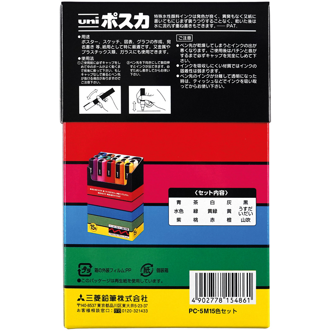 Uni Posca ist ein wasserbasierter deckender Farbstift mit Pigmenten, die auf vielen verschiedenen Oberflächen haften wie Papier, Karton, Holz, Stein, Textil, Glas, Plastik und Metall. Die Farbe ist auf vielen porösen Untergründen permanent und kann von glatten Oberflächen entfernt werden, was Experimentieren ohne Beschädigung des Untergrunds ermöglicht. Die Farbe trocknet schnell, ist geruchlos und eignet sich ebenso für spontane Bastelprojekte wie für anspruchsvollere künstlerische Arbeiten.