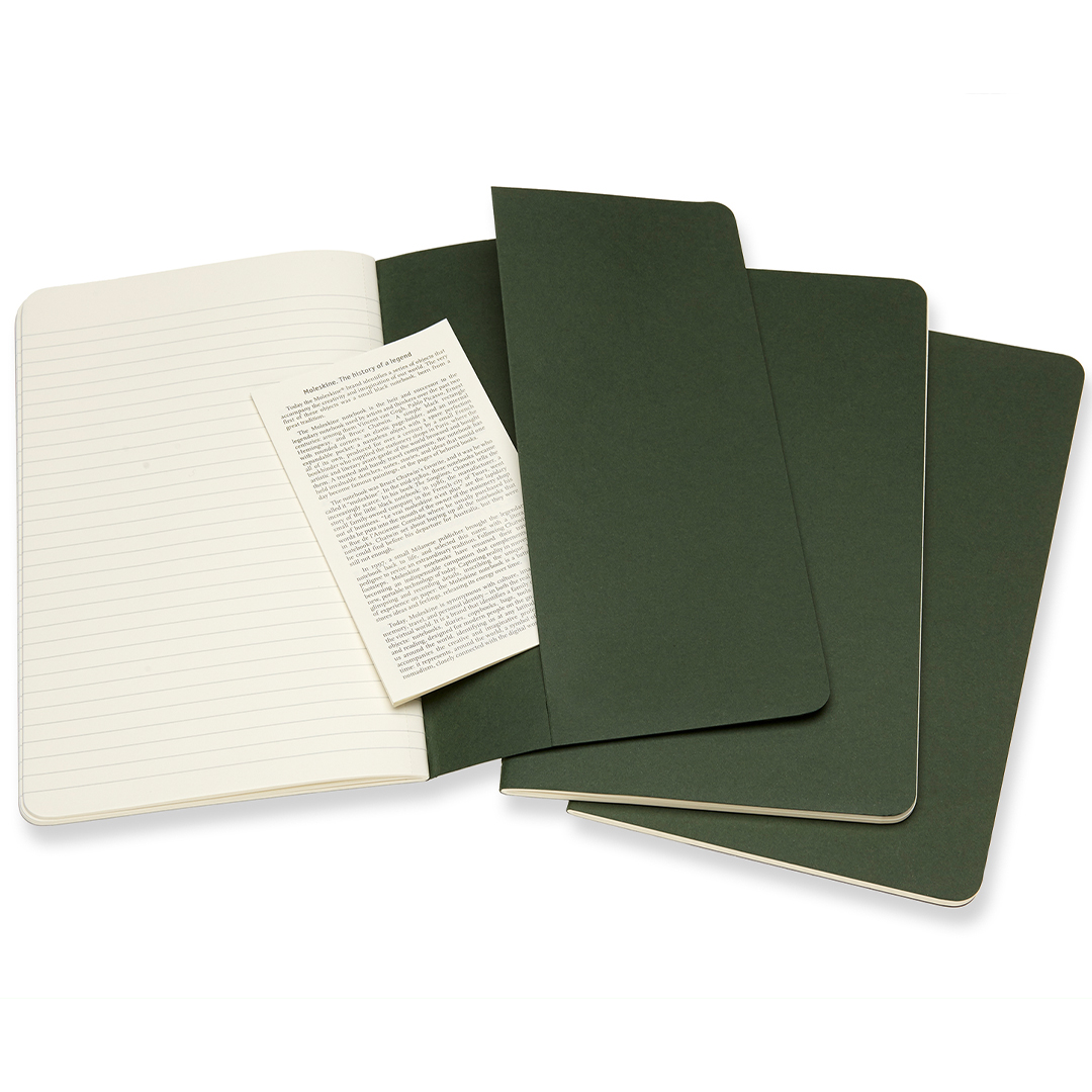 Set mit 3 Notizbüchern im Format Large-Größe (13 x 21 cm) vom italienischen Hersteller Moleskine. Jedes Buch enthält 64 Seiten, von denen die letzten 16 heraustrennbar sind. Genähte Bindung und Innentasche. Hochwertiges, säurefreies Papier!