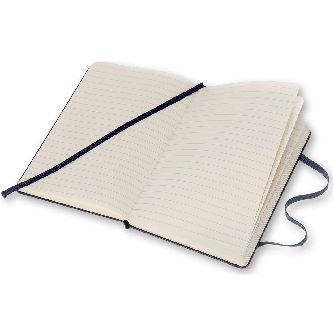Notizbuch mit festem Einband im Pocket-Format (9x14 cm) von der italienischen Marke Moleskine. Das Notizbuch enthält 192 Seiten und verfügt über ein erweiterbares Innenfach sowie ein elastisches Band, das das Buch geschlossen hält, wenn es nicht verwendet wird. Das elfenbeinfarbene Papier ist FSC-zertifiziert, säurefrei und von hoher Qualität!