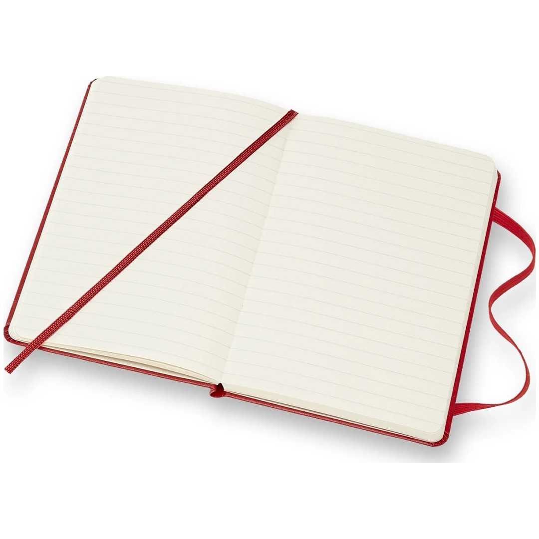 Notizbuch mit festem Einband im Pocket-Format (9x14 cm) von der italienischen Marke Moleskine. Das Notizbuch enthält 192 Seiten und verfügt über ein erweiterbares Innenfach sowie ein elastisches Band, das das Buch geschlossen hält, wenn es nicht verwendet wird. Das elfenbeinfarbene Papier ist FSC-zertifiziert, säurefrei und von hoher Qualität!