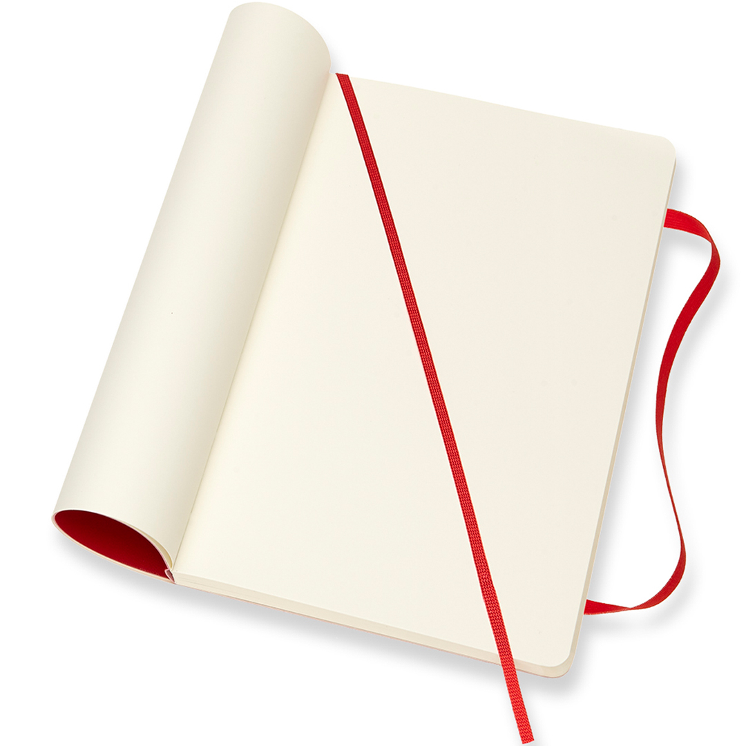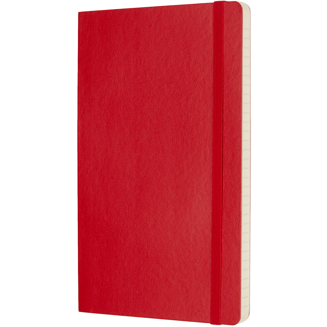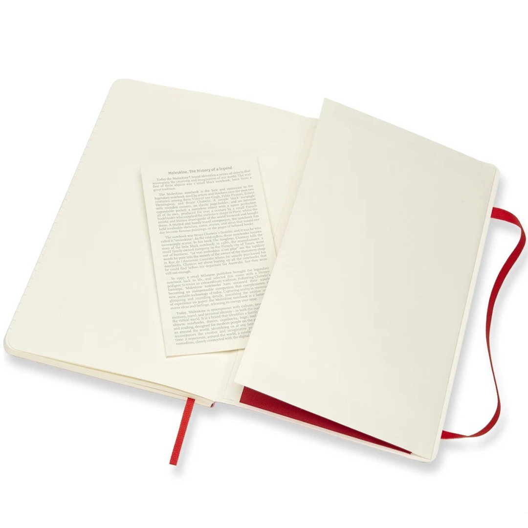 Notizbuch mit flexiblem Softcover im Large-Format (13 × 21 cm) von der italienischen Marke Moleskine. Das Notizbuch enthält 192 Seiten und verfügt über eine erweiterbare Innentasche sowie ein Gummiband, das das Buch geschlossen hält, wenn es nicht verwendet wird. Das elfenbeinfarbene Papier ist FSC-zertifiziert, säurefrei und von hoher Qualität!