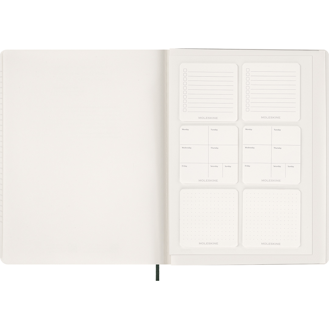 Praktischer Jahreskalender im weichen, schlanken Format von Moleskine, datiert von Januar bis Januar, mit allen Wochentagen auf einer Doppelseite. Der Essential Planner ist so konzipiert, dass er leicht und handlich ist und sich einfach überallhin mitnehmen lässt. Nutzen Sie die beiliegenden Aufkleber und Haftnotizen, um Ihre Planung individuell zu gestalten.