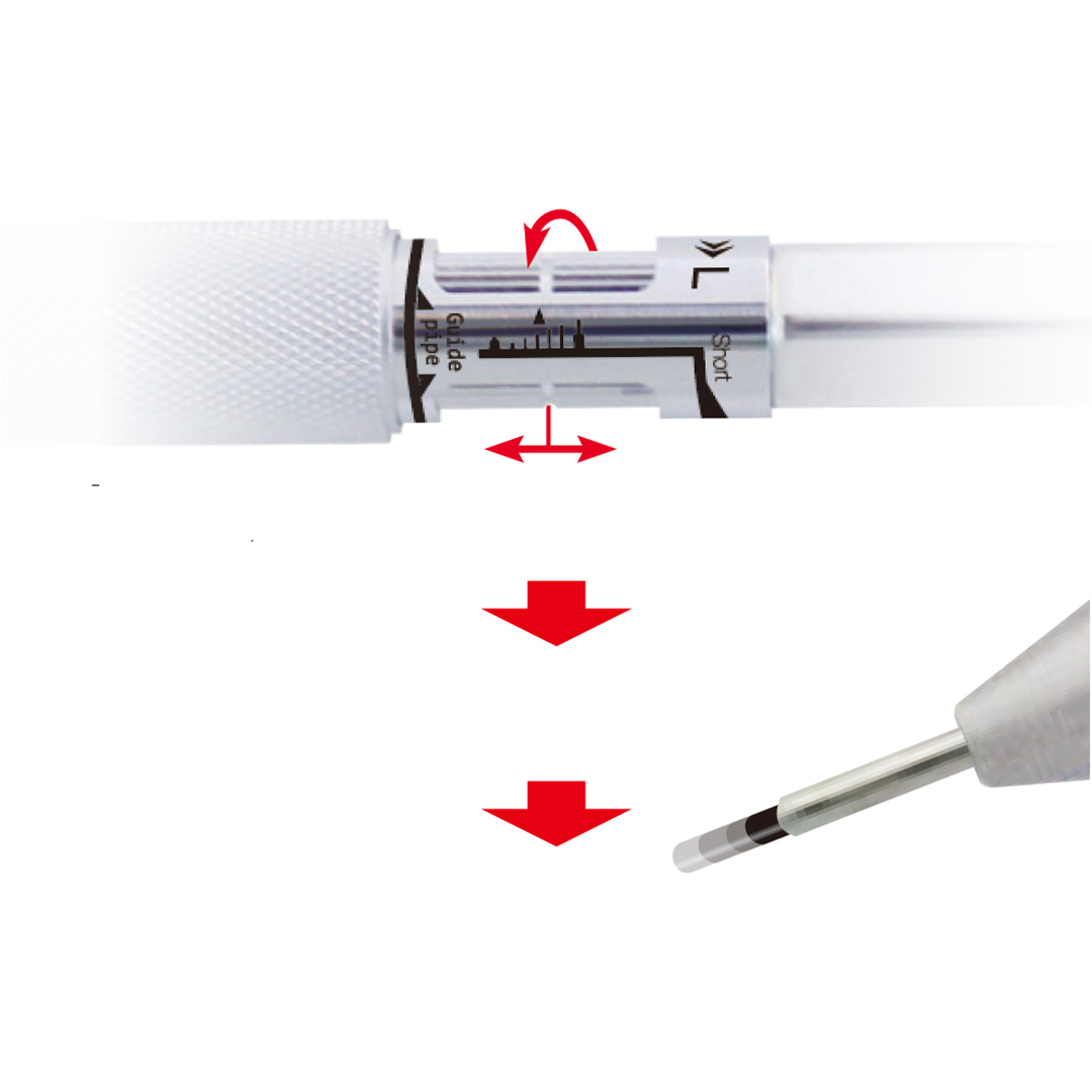 - Einstellbarer Minenhalter (0 mm – 5 mm)