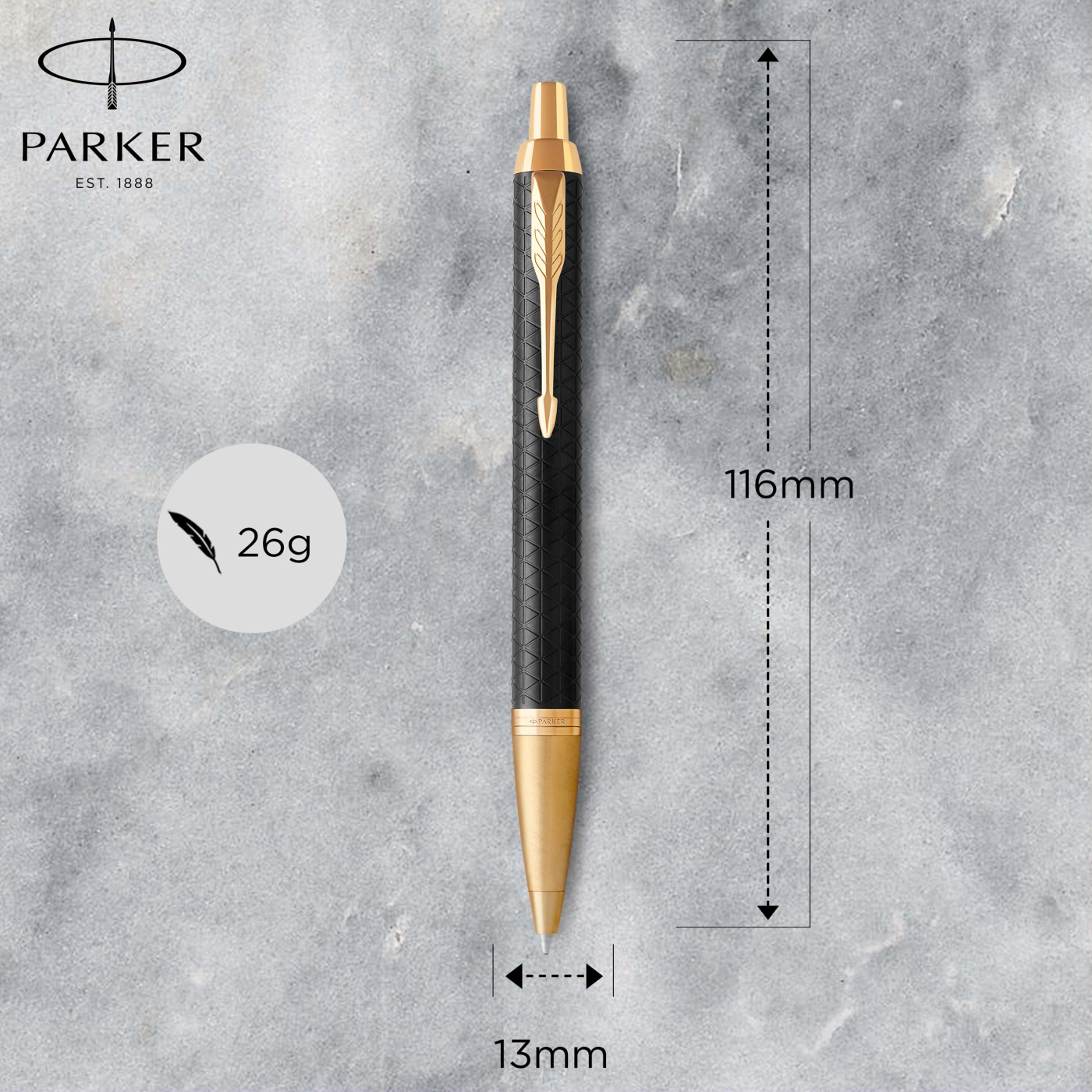 Der Stift ist aus Messing gefertigt und hat eine Kugelspitze, die gleichmäßige Linien und ein weiches Schreiberlebnis bietet. Das Besondere am IM Premium ist das eingravierte Muster auf dem Stiftgehäuse – das i-Tüpfelchen auf einem Stift, der sich ebenso gut als Geschenk an andere wie auch an dich selbst eignet.