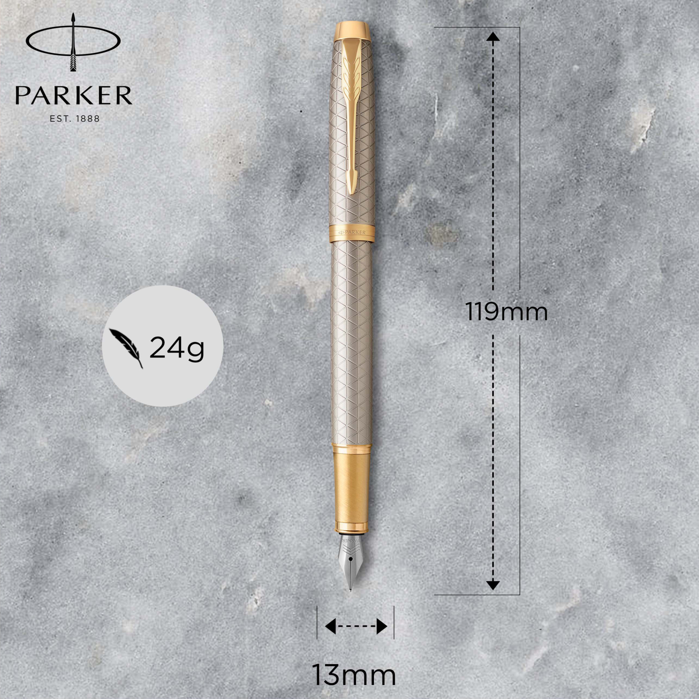 Seit über 130 Jahren stellt das Unternehmen Parker Stifte her und perfektioniert seine Techniken konstant, um immer qualitativ hochwertige Schreibgeräte anbieten zu können. IM Premium ist da keine Ausnahme. Dieser professionelle und zugleich stilvolle Kugelschreiber kombiniert eine elegante, spitz zulaufende Form mit ikonischen Details.