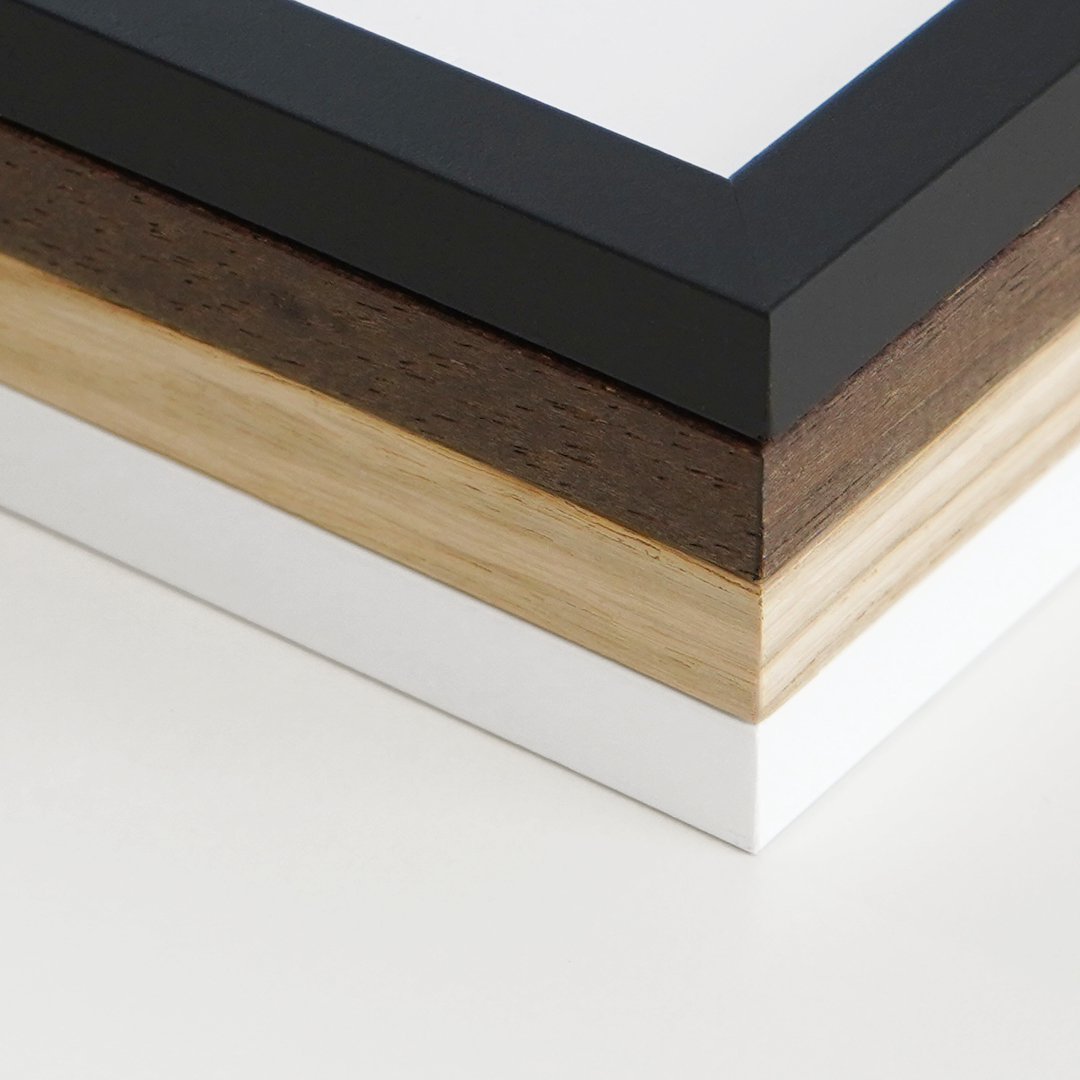 Dieser Rahmen wird mit klarem Acrylglas geliefert und hat eine Rückseite mit Aufhängeschlaufen für die vertikale und horizontale Wandmontage. Die Rückwand wird durch biegsame Stifte gehalten und lässt sich nach dem Aufhängen des Bildes leicht entfernen. Der Rahmen kann auch mit einem Passepartout verwendet werden, das separat erhältlich ist.