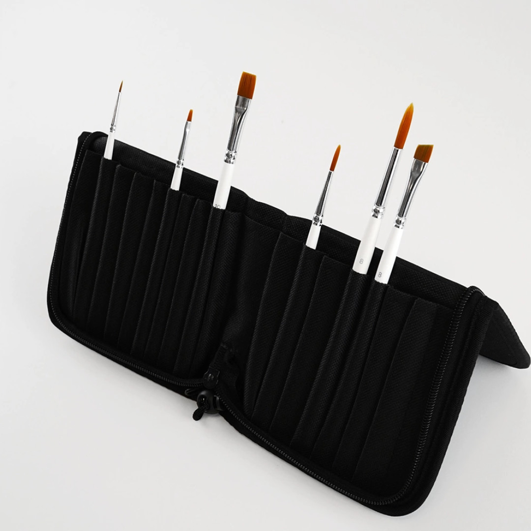 Lege deine Pinsel niemals lose in die Tasche, wo sie durch andere Gegenstände beschädigt werden könnten. Verwende stattdessen ein schützendes Etui. Achte aber darauf, keine feuchten Pinsel in ein geschlossenes Etui zu legen, da die Feuchtigkeit Schimmelbildung verursachen kann.