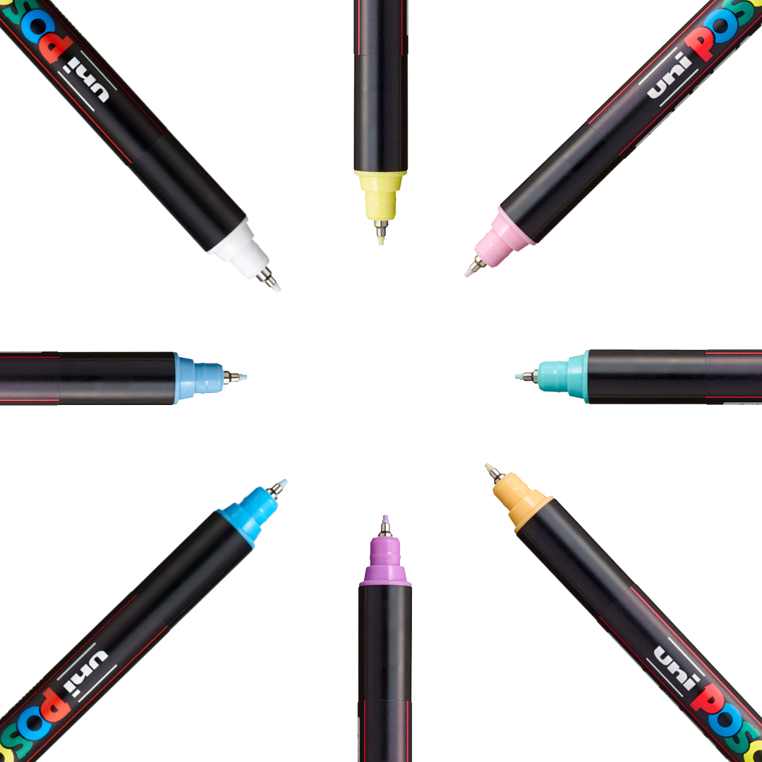 Posca ist ein ikonischer und vielseitiger Acrylmarker, der von Künstlern, Hobbyanwendern und kreativen Gestaltern auf der ganzen Welt geschätzt wird. Die Stifte sind mit wasserbasierter, deckender Farbe gefüllt, die Ihre Ideen zum Leben erweckt – selbst auf dunklen oder transparenten Oberflächen.