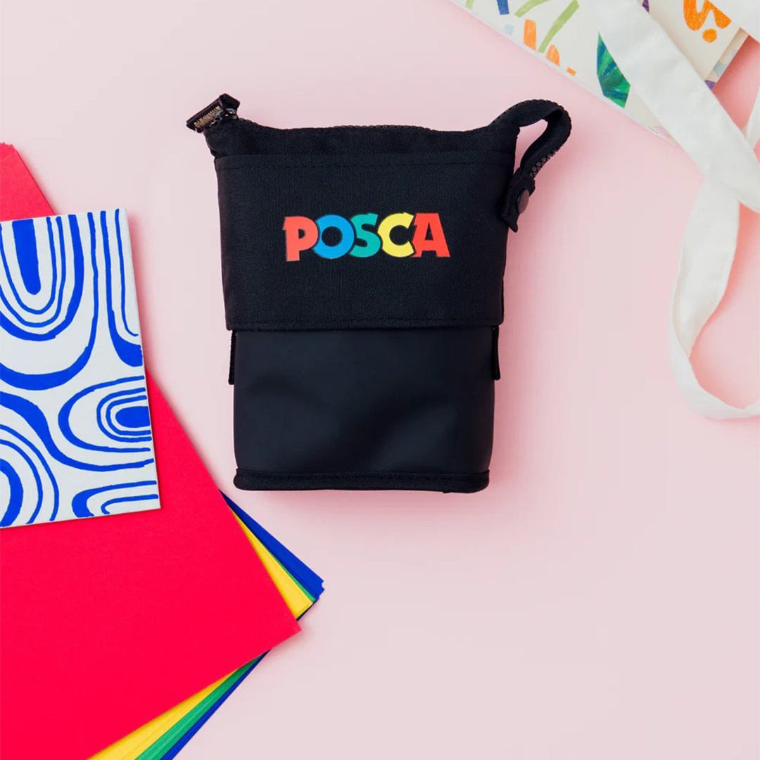 Indem man die obere Kante des Penntäschchens herunterzieht, entsteht ein stabiler Stifthalter. Es bietet Platz für bis zu 16 Posca PC‑5M.