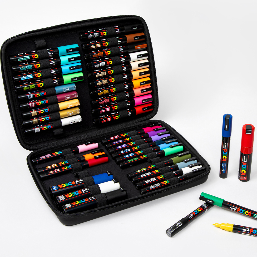 Geliefert in einem robusten, hochwertigen Etui mit Reißverschluss. Das Etui hat eine harte Außenseite mit gummierter Oberfläche und Posca-Logo.