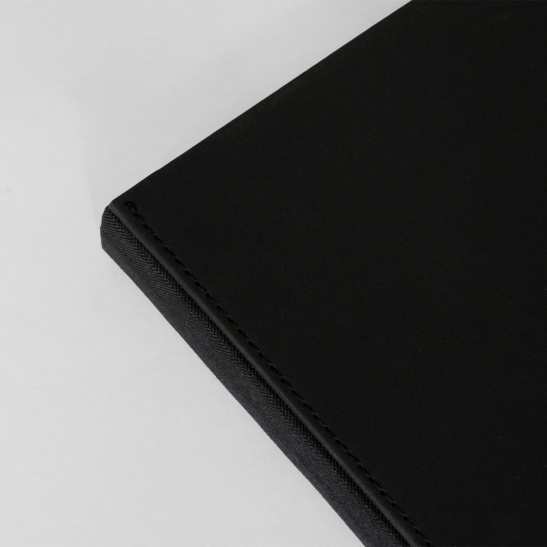 Der Einband besteht aus veganem Leder mit einem Rücken aus Hanfstoff. Das Buch ist fadengeheftet, wodurch es flach aufliegt, wenn Sie schreiben oder zeichnen. Am Ende des Buches befindet sich eine praktische Tasche zur Aufbewahrung von losen Blättern oder Notizen. Zudem verfügt es über ein elastisches Band, das das Buch geschlossen hält und die Seiten schützt, wenn es nicht in Gebrauch ist.