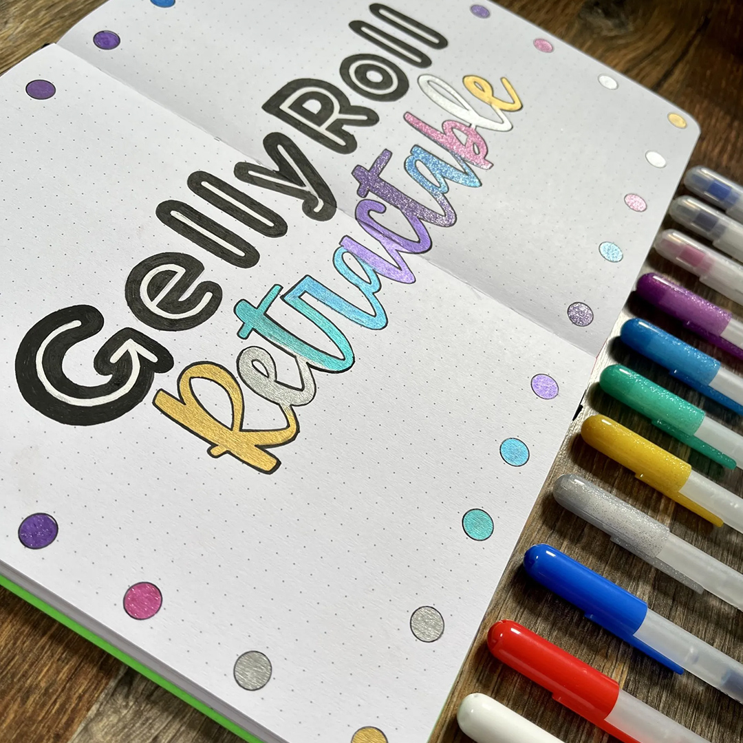 Die Gel-Tintenformel ist deckend und glänzend, trocknet schnell und erzeugt einen fantastischen Farbeffekt, der sowohl auf hellen als auch dunklen Oberflächen deutlich sichtbar ist. Ob Sie Tagebuch schreiben, skizzieren oder kreative Projekte gestalten, die präzise Spitze liefert scharfe, klare Linien – jedes Mal!