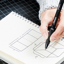 Der Stift verfügt über einen Klickmechanismus und liefert eine tiefe, intensive Geltintenfarbe. An der Vorderseite des Stifts befindet sich ein bequemer Gummigriff für ein ergonomischeres Schreiberlebnis.