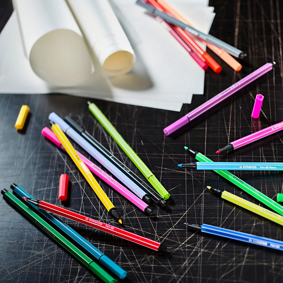 Es gibt viele verschiedene Sets des Stabilo Pen 68 in kräftigen, lebendigen Farben.